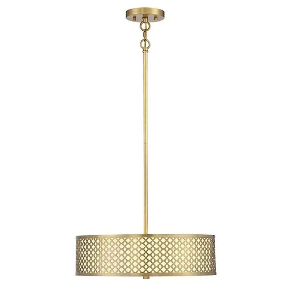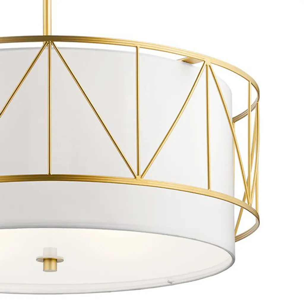 Fill your dining room with light and enhance its elegant personality with the clean geometry of the Birkleigh Drum Pendant from Kichler. On its own or in sequence, this piece invites a gathering around its presence. It seduces you with a clean metal frame highlighted by an eye-pleasing composition of triangular shapes. The soft surface and the creamy white hue of its linen shade heightens the dazzling movement of the frame. Its light filters through the linen shade and an etched glass plate in a bountiful feast of glare-free light.