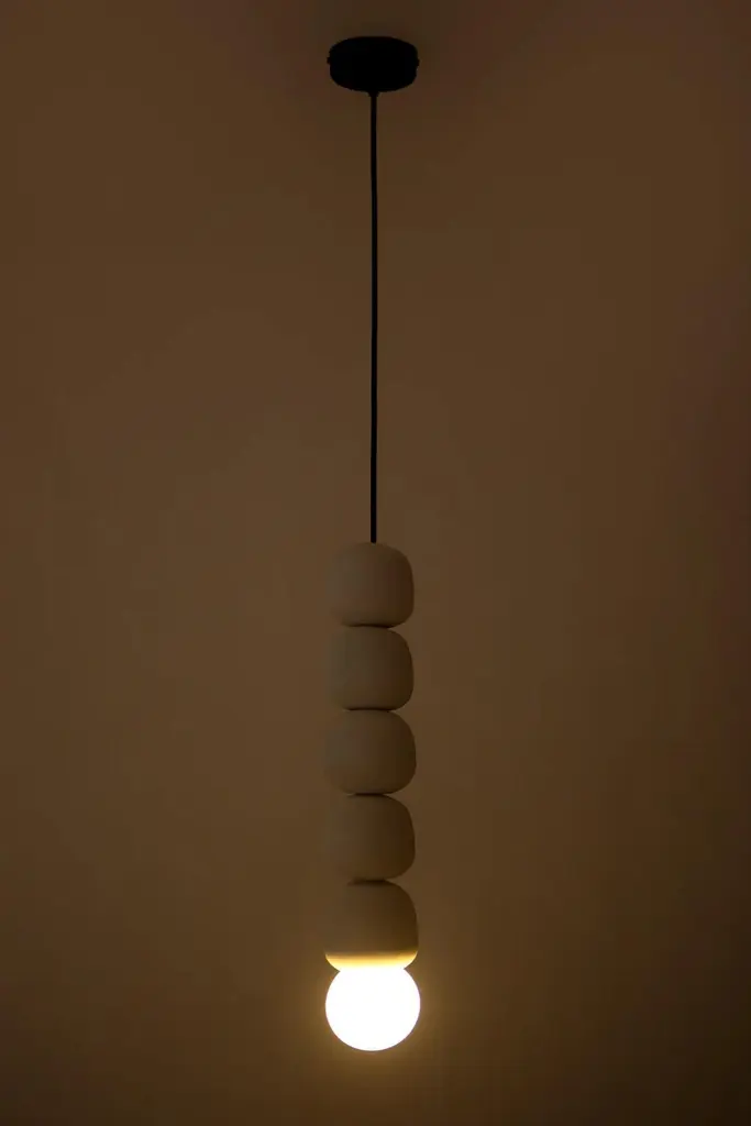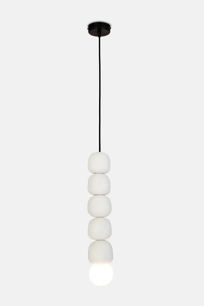 Black Beads Ceramic Pendant Lamp by HatsuDimensions: D 9 x H 135 cmMaterials: Ceramic, metal.Available in white or black. Please contact us.All our lamps can be wired according to each country. If sold to the USA it will be wired for the USA for instance.Elevate your décor with this striking black and white pendant light. Featuring a series of smooth, rounded ceramic forms, this unique fixture adds a pop of aesthetic and a playful touch to any setting. The minimalist design, combined with a captivating gradient, makes it a versatile piece.Hatsu is a design studio based in Mumbai that creates modern lighting that are unique and immediately recognizable. We started with an idea to make good design available to people and design products that are eclectic, romantic and minimal. We want to be progressive with our designs in such a way that they influence the users lives. There are three responses to a piece of design - yes, no and wow! Our aim is wow.