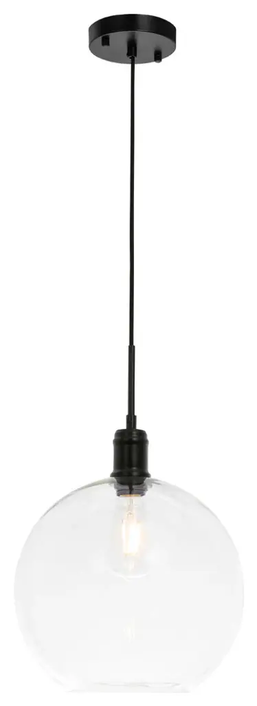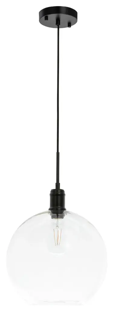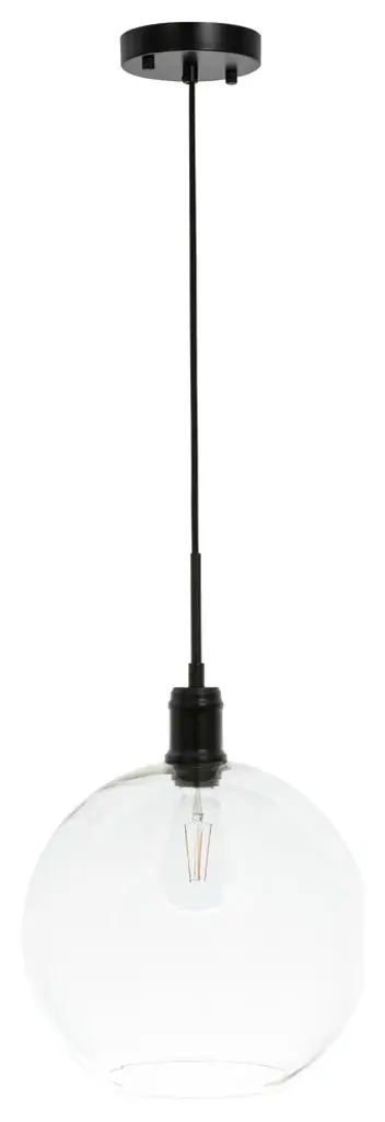 The modesty of this black finish pendant is a testament to the joy it brings. Despite its minimalistic quality, the clear round shade and adjustable cord will add that extra missing ''something'' to any room without making it seemed cluttered. Its compact style is a wonderful addition to any room large or small, and will light up rooms without bias.Modern day farmhouse rustic styleHardware finish in black Clear round shaped shade1 light that illuminates downwards ; dimmableFixture material: metal and glasssuspended from a canopy with an adjustable black fabric cordLight bulb type: LED E26 (not included)