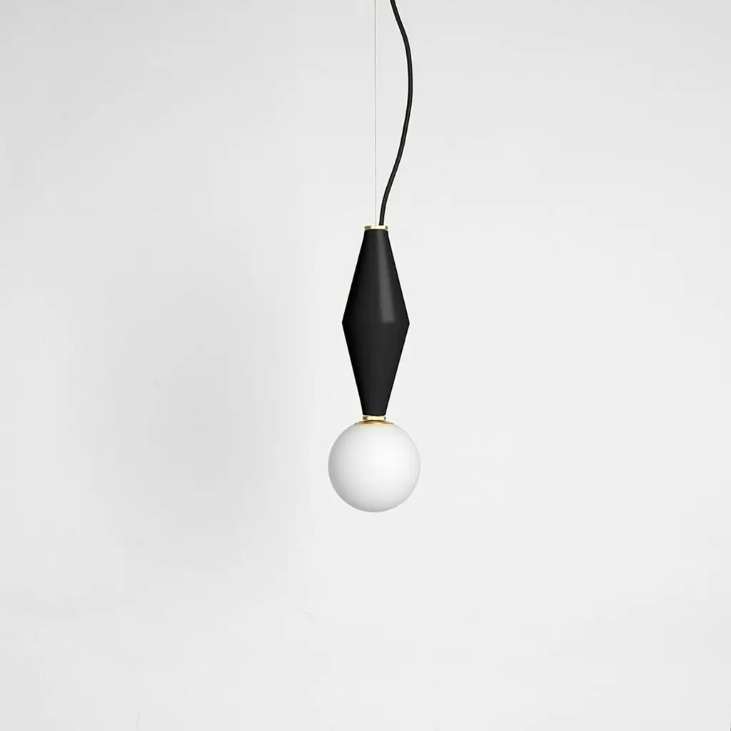 Black Gamma A lamp by Mason EditionsDimensions: 12 × 12 × 37 cmMaterials: aluminium and blown opal white glassColours: pink, burgundy, light grey, sage green, petrol green, black.All our lamps can be wired according to each country.Gamma is the third letter of the Greek alphabet and also the third brightest star in the constellation.It’s in fact an alphabet of three aluminium elements, that creates a range of six modular suspensions. The frosted glass sphere contains the luminous soul which, combined in different ways with the metal elements, gives life to new solutions that look like constellations. Suspended led lighting fixture available in several colours, to create infinite combinations: pink, burgundy, sage green, petrol green, light grey and black. Showcase it as a statement piece or spice up any interior space by displaying it in multiples.Mason Editions is an Italian company specialized in the production of design furniture, lighting solutions and accent pieces. Born from the lifelong passion for lighting and entrepreneurial spirit of Fabio and his partner Silvia, Mason Editions places itself halfway between fine art and exquisite craftsmanship. A collection of lighting, design objects and furnishing accessories, signed by artists Serena Confalonieri, Martina Bartoli and Matteo Fiorini, head of the creative direction. Mason Editions comes from the experience of an Italian lighting company placed in the Veneto region. This new brand of furniture elements was born from the meeting between the entrepreneur Fabio Mason and three international designers who designed the first collection for a sophisticated public. Therefore the collection wants to be eclectic and timeless. The material contrast and fresh design, with essential shapes, mark the mason editions collection. In conclusion, the elegant Italian sign highlights proposals suitable for all environments. Mason editions is a set of experiences, artisans, and productive know-how that creates a capable system.