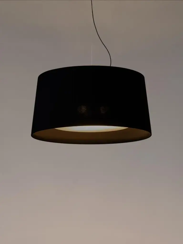 Black gt7 pendant lamp by santa & cole. Dimensions: d 90 x h 44 cm. Materials: metal, ribbon.designed for intermediate volumes and domestic areas, gt7 is larger, requiring a reinforced structure that adds a metal top disc to the lower diffuser disc. Santa & cole advocates the use of ribboned shades to dress up every kind of light source, exploring different materials and playing with colours and hues. Santa & cole is a small, independent and global editor of design products, with its roots in belloch (barcelona, spain). We have been editing since 1985, when the company was first founded. By editing we mean preparing a work for the public domain, we mean adapting an item for everyone’s use. What a book editor does with stories, we do with objects. More than eighty creators have contributed to a rich catalogue of furniture and lighting products originating in very different contexts, by renowned designers such as antoni arola, miguel milá, andré ricard and llmari tapiovaara. Acute and attentive to quality and detail, santa & cole outsources all of its industrial production to an extensive network of suppliers, mainly in spain, but also in other countries such as japan, where the washi paper for our tekiò lamp is made. Our mission is to build, safeguard and disseminate knowledge through design objects. Objects whose quality is recognisable at the touch of a hand, and that enrich people’s lives, whether at home or in shared environments. Our philosophy is more modern than futurist and we are more intrigued by silence than by stridency. Our focus is not the present market, but the future one; not barcelona, but the world; not fashion, but history. this piece is attributed to the mentioned designer/maker. It has no attribution mark and no official proof of authenticity, however it is well documented in design history. I take full responsibility for any authenticity issues arising from misattribution, up to 250v (europe/uk standard).