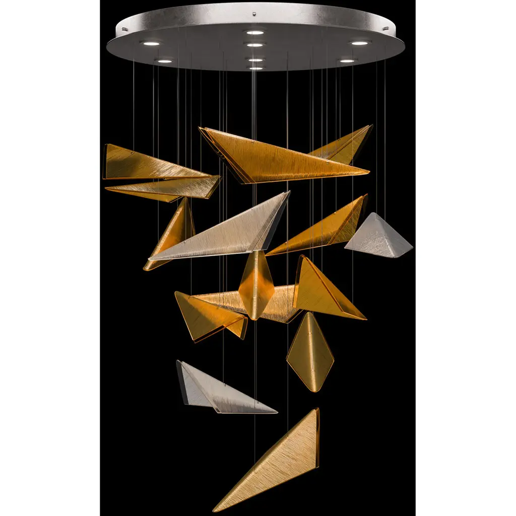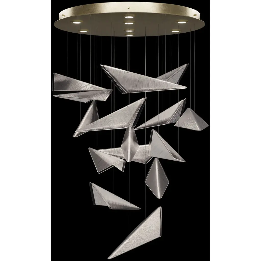 Inspired by the bold geometry of chevron shapes and the sleek lines of modern aircraft, Blade brings a sense of motion and precision to lighting design and merges sleek design with modern functionality. Pendant features cut crystal and integrated LEDs in