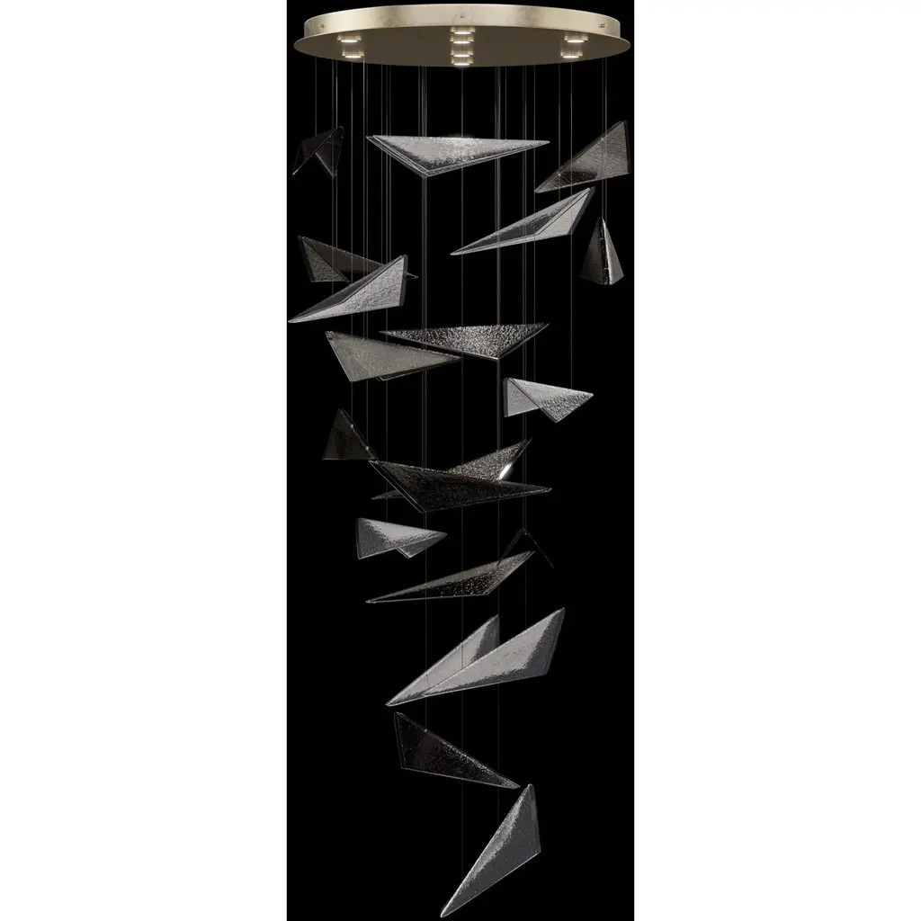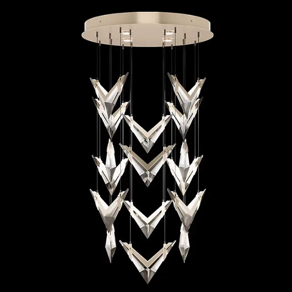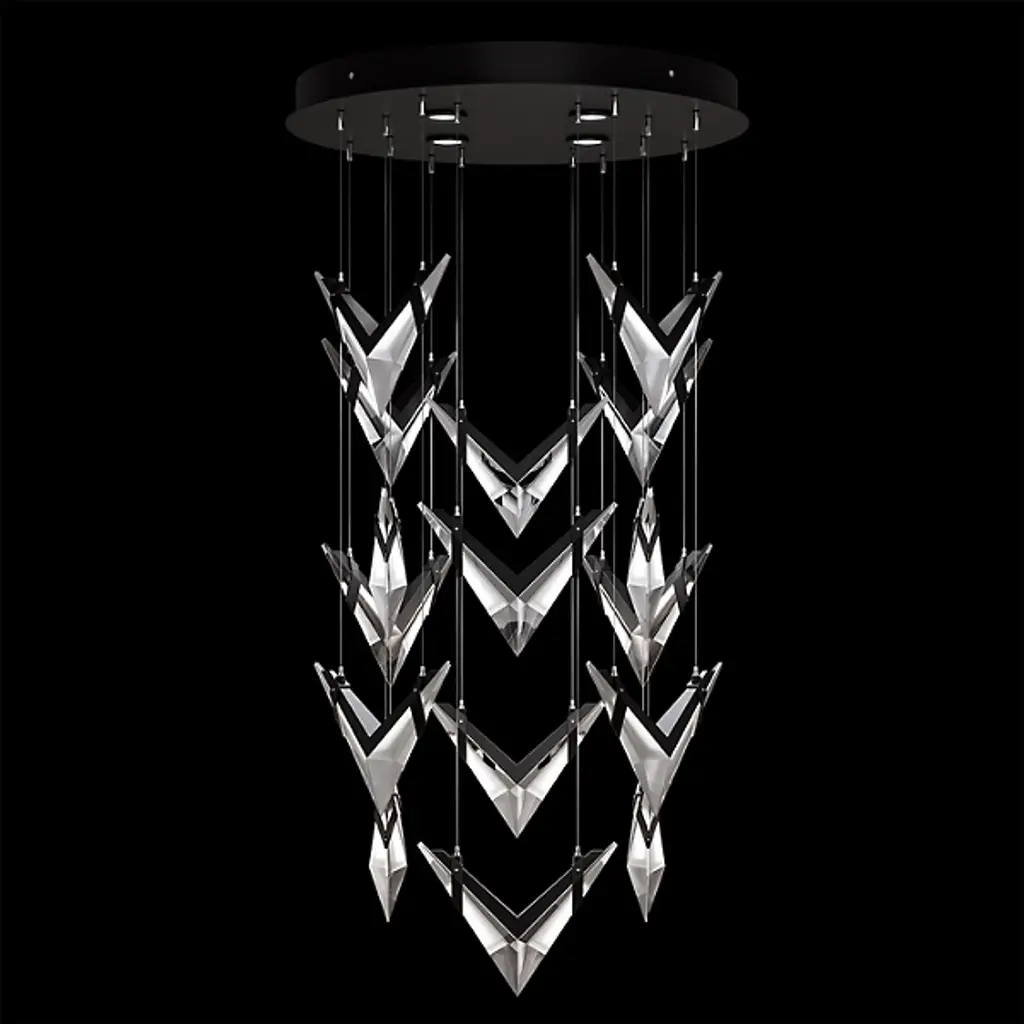 The Blade LED Multi-Light Pendant from Fine Art Handcrafted Lighting arranges crystal chevrons in a dynamic formation. This clustered pendant offers three-dimensional interest from every viewing angle. Its wood accents provide contrast against the crystal, adding depth to the composition. The integrated LEDs illuminate each crystal element when lit, creating layered lighting effects that elevate ordinary spaces. Perfect for foyers, dining areas, or stairwells with higher ceilings, this dimmable suspension provides ambient lighting and artistic presence. It's a fixture designed for spaces where standard lighting would feel insufficient or uninspired.