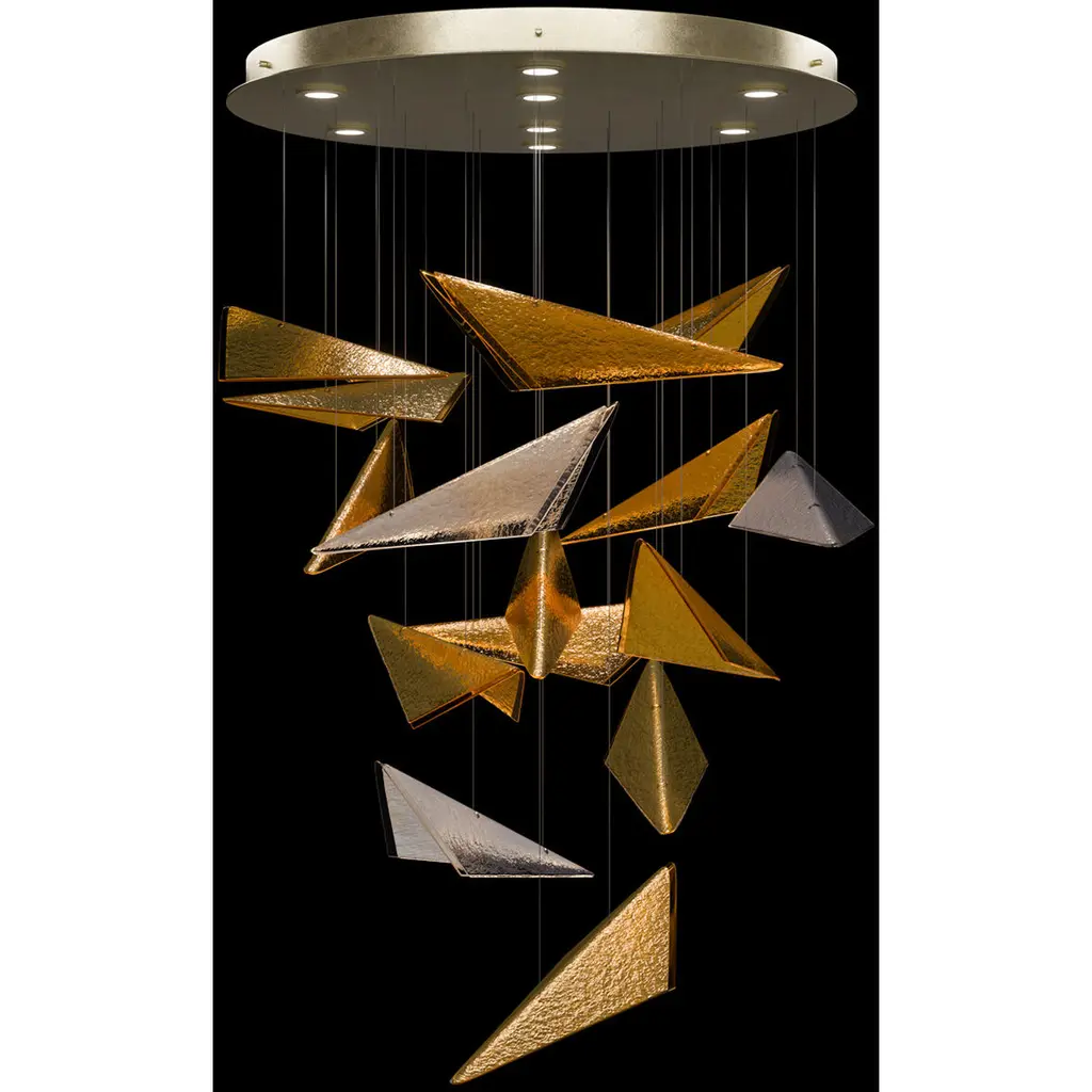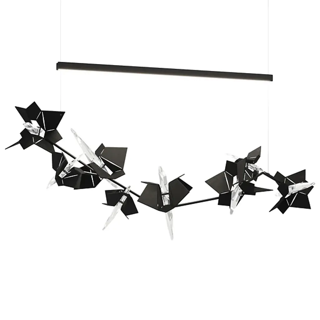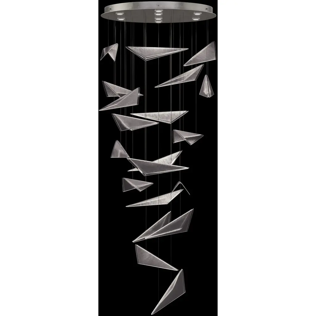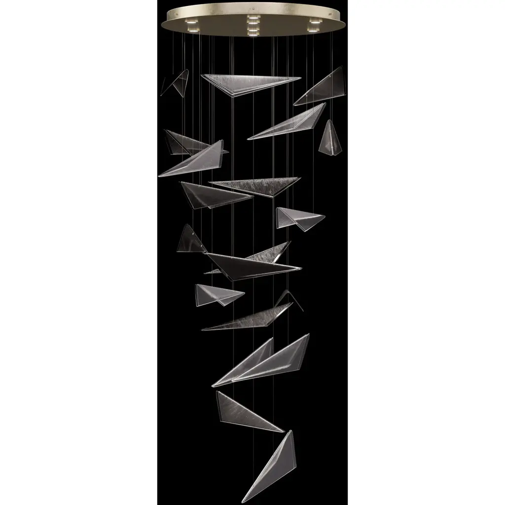 The Blade LED Multi-Light Pendant from Fine Art Handcrafted Lighting arranges crystal chevrons in a dynamic formation. This clustered pendant offers three-dimensional interest from every viewing angle. Its wood accents provide contrast against the crystal, adding depth to the composition. The integrated LEDs illuminate each crystal element when lit, creating layered lighting effects that elevate ordinary spaces. Perfect for foyers, dining areas, or stairwells with higher ceilings, this dimmable suspension provides ambient lighting and artistic presence. It's a fixture designed for spaces where standard lighting would feel insufficient or uninspired.