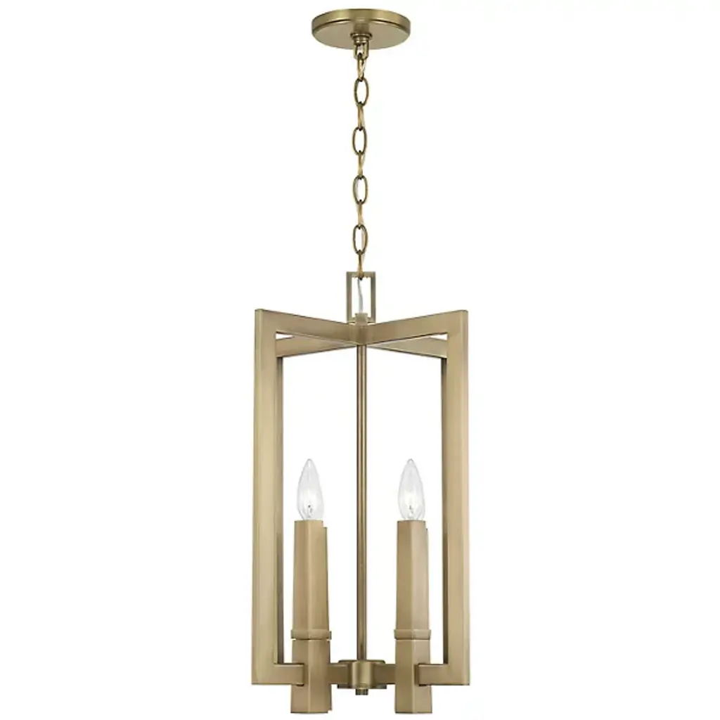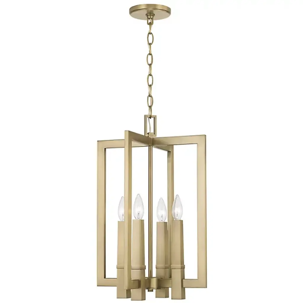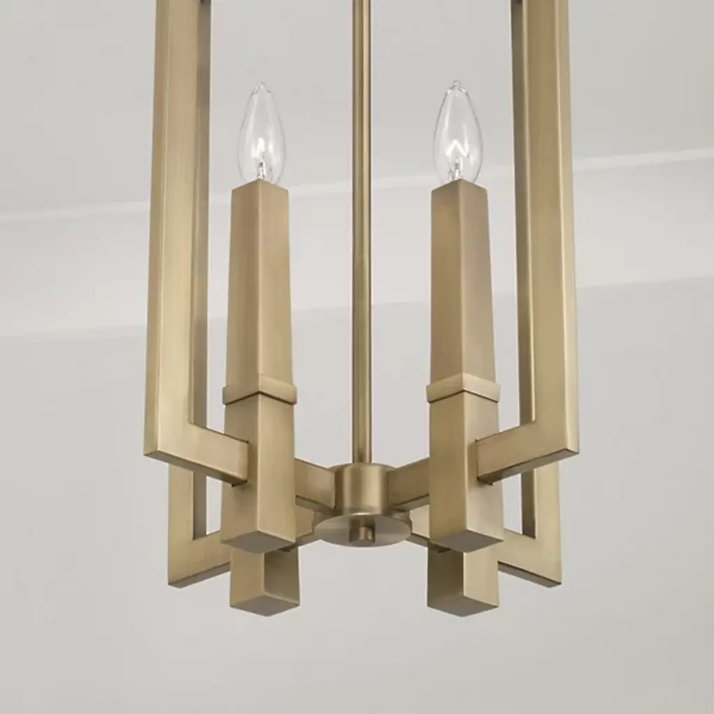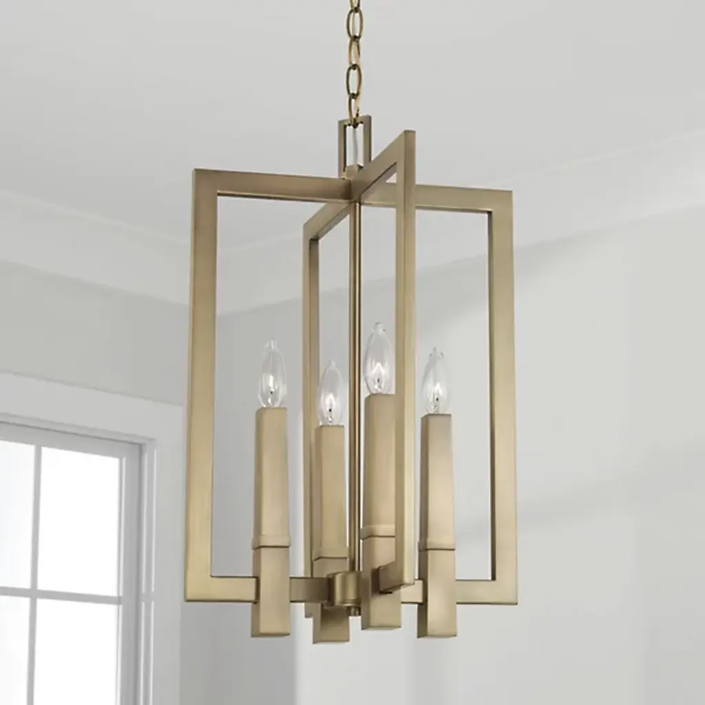 Bold and minimal design elements meet in the Blake Pendant by Capital Lighting. This fixture’s fine metal framework showcases strong lines, creating a sculptural statement. Durable, geometrically-shaped encasements provide the foundation for luminous, flame-shaped bulbs which vibrantly illuminate your living space. A lovely chain of links facilitates this chandelier’s midair suspension by attaching it to a ceiling canopy.