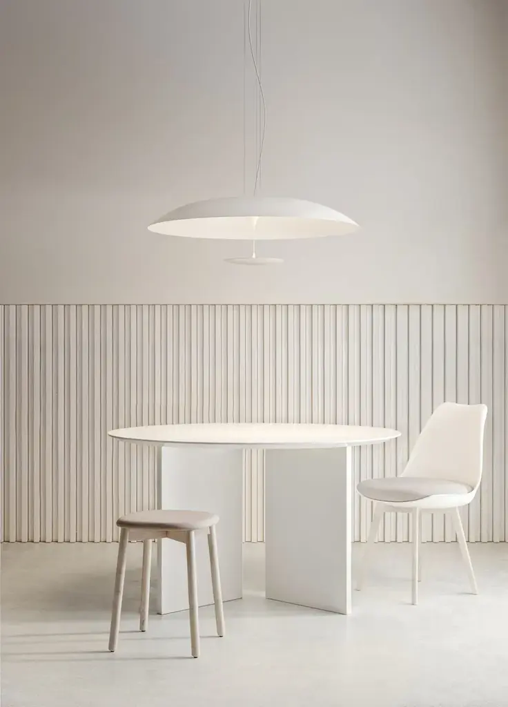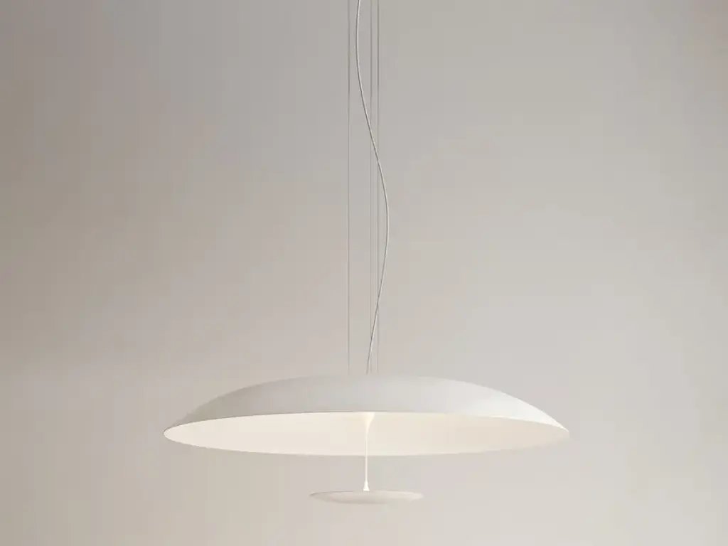Blanco is a pendant lamp in matte white aluminium.An elegant and contemporary interpretation of the classic ceiling and suspension lamp, Blanco in matte white aluminum features fluid, lightweight shapes that resemble discs suspended in the air.Perfect for those seeking discreet yet impactful lighting, this lamp adapts to a wide range of spaces, enhancing the architecture with its essential and refined design. It can be used both as a suspension and as a ceiling lamp.Specifications:Optional: power supply includedElectrical device: 23,8W, 700mA, 2893lm, 3000KIP Rate: IP20Certification: IEC 60598-1:2020, EN 60598-1:2021