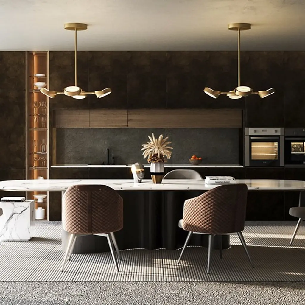 Presented by Alora Lighting, the Blanco LED Pendant is a mid-century mod-inspired piece with a transitional style throughout the composition. Beautiful cuts of Alabaster stone cover integrated LED disks, giving this classic, mid-mod-looking piece a modern edge with an organic touch. The heads are adjustable for perfect task lighting wherever you decide to place it.