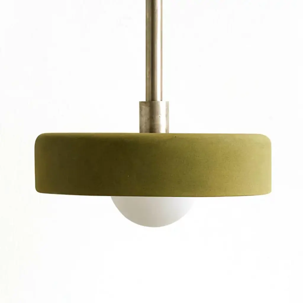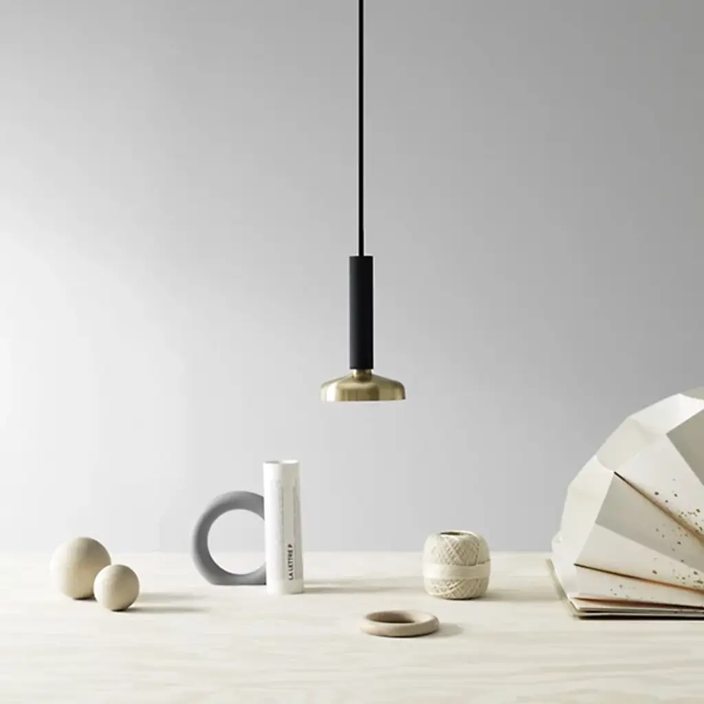 The Blend 9 Mini Pendant from Pholc distills form and function into a quietly impactful design. Designed by Sabina Grubbeson, this pendant features a simple cylindrical housing supporting a flat, flaring shade—drawing on Scandinavian minimalism and Japanese geometry. The warm brass finish adds welcome refinement while light reflects softly off the underside of the shade, creating a gentle, ambient glow. Perfect for dining areas, counters, or reading corners, it offers understated character with a balanced, slim silhouette.