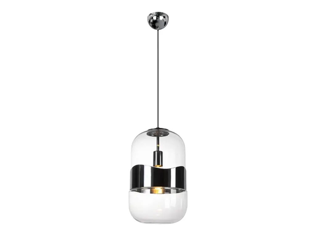 Illuminate spaces with Blind, a distinctive pendant light adorned with captivating details. The clear glass shade, embellished with a stylish metal belt, allows the light to shine through freely, making it an excellent choice for well-lit spaces such as kitchens or studies. Tailor your aesthetic with metal parts available in either brass or chrome. The pendant is equipped with a single E27 socket and effortlessly mounts to the ceiling with a hook.Light source: 1 x E27, max. 60WMetal finish: brass (1924-184), chrome (1924-55)Cable length: 300cmMounting: hook