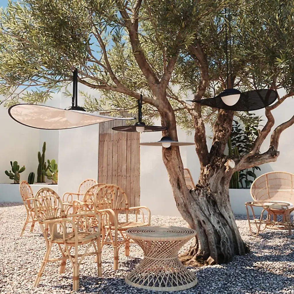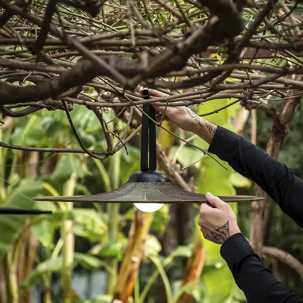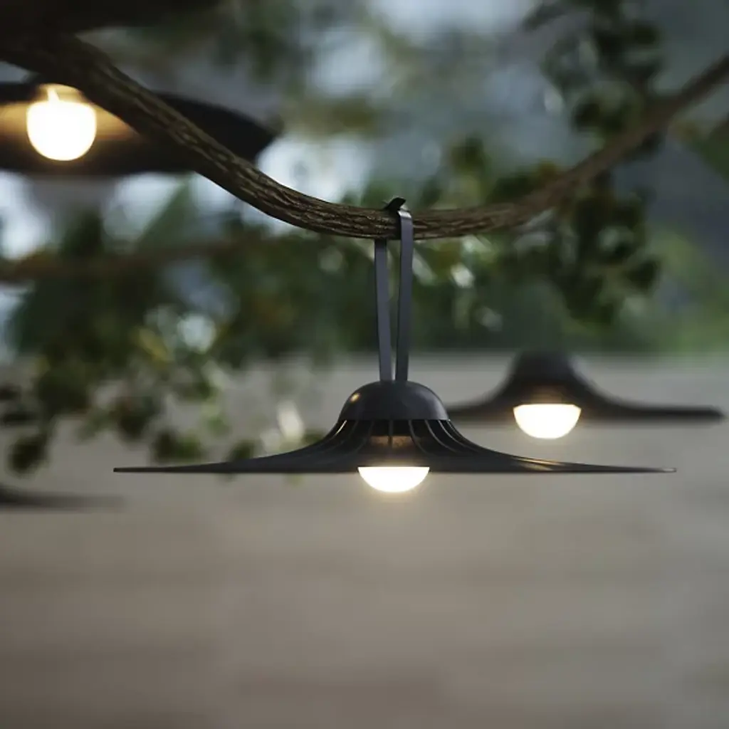 Bring bold light to outdoor locations with the broad reach and simple style of the Bloom Outdoor Rechargeable LED Pendant from Carpyen Easy Light. A soft, durable strap allows placement in many locations, whether suspended from branches or structural elements, while wet-listed LED lamping chargeable with an included USB cable extends from a dome housing at the center of a dish shade fashioned from fireproof and UV-resistant fabric. The fixture activates and dims at the command of an included remote control, offering easy use for anywhere between 4 to 10 hours of illumination provided by the lamping.