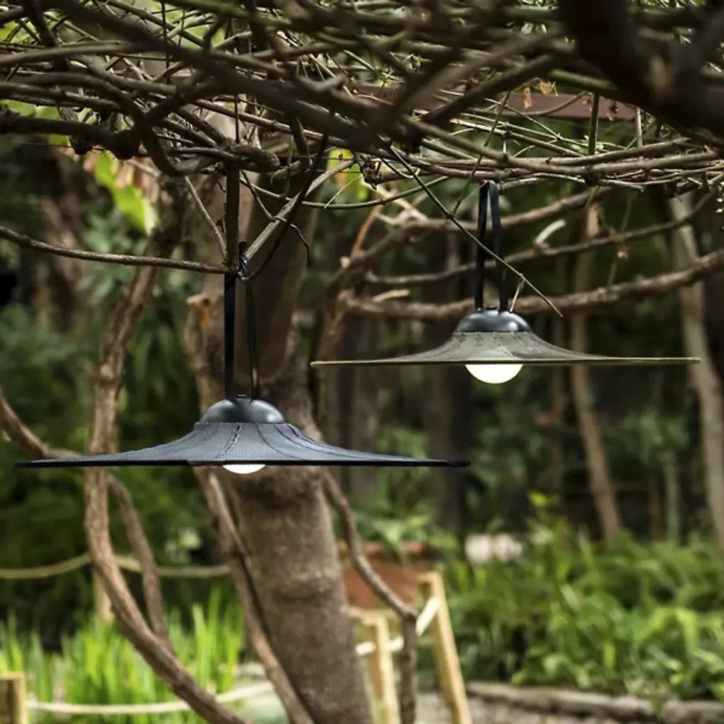 Bring bold light to outdoor locations with the broad reach and simple style of the Bloom Outdoor Rechargeable LED Pendant from Carpyen Easy Light. A soft, durable strap allows placement in many locations, whether suspended from branches or structural elements, while wet-listed LED lamping chargeable with an included USB cable extends from a dome housing at the center of a dish shade fashioned from fireproof and UV-resistant fabric. The fixture activates and dims at the command of an included remote control, offering easy use for anywhere between 4 to 10 hours of illumination provided by the lamping.