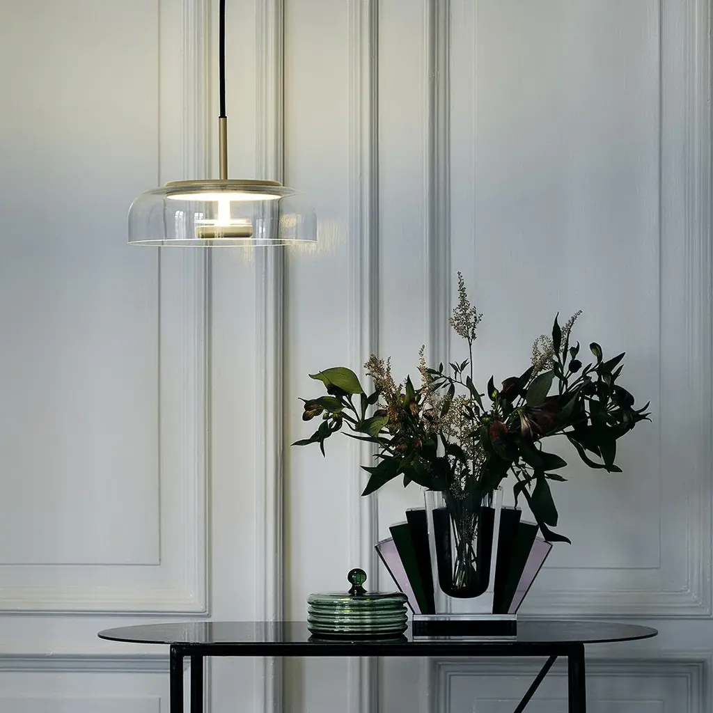 Blossi 1 pendant has a simple expression but with a high attention to details. The Blossi collection is produced with advanced LED technology. A special developed LED disc reflects the light in the mouth-blown glass shade, spreading a soft and indirect light.