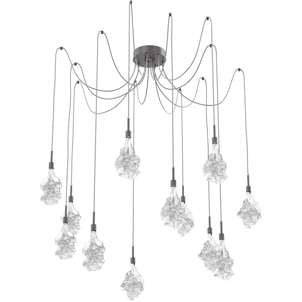 Featuring our artisan blown Blossom crystal glass diffusers, this versatile chandelier style enables customization of the placement and height of each pendant. Each Blossom is a one-of-a-kind creation reflecting the combined talents of Hammertons metal and glass fabrication teams. Integrated LED illuminates each blown glass shade without the distraction of a filament bulb.
