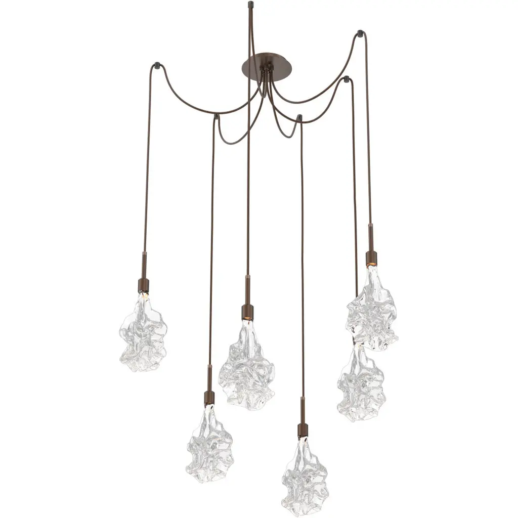 Featuring our artisan blown Blossom crystal glass diffusers, this versatile chandelier style enables customization of the placement and height of each pendant. Each Blossom is a one-of-a-kind creation reflecting the combined talents of Hammertons metal and glass fabrication teams. Integrated LED illuminates each blown glass shade without the distraction of a filament bulb.