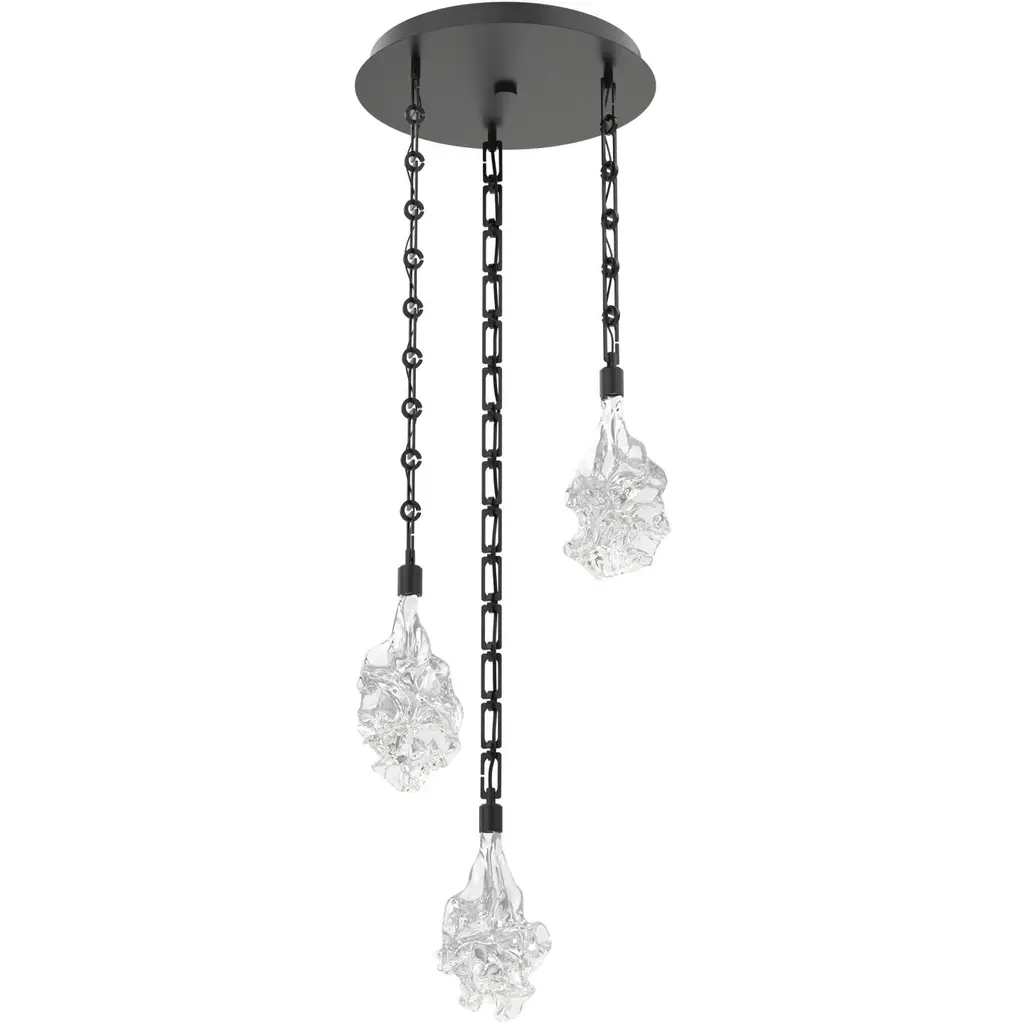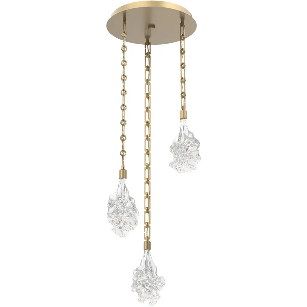 A whimsical celebration of organic design, this inspired round multi-pendant chandelier features 3 Blossom pendants suspended from a round canopy. Each hand-blown Blossom glass shade is a one-of-a-kind artisan creation. Suspension options include cloth-braided cord or handcrafted chain in three vintage-inspired styles.