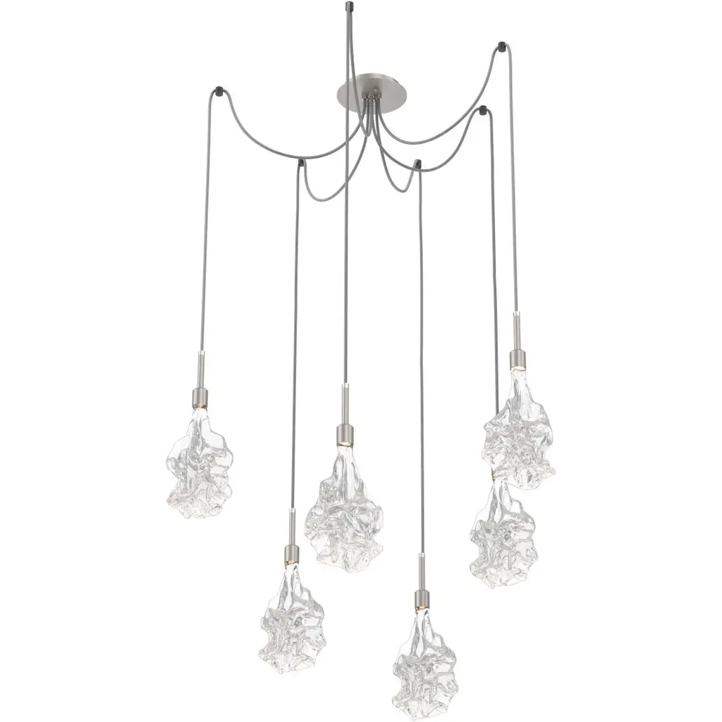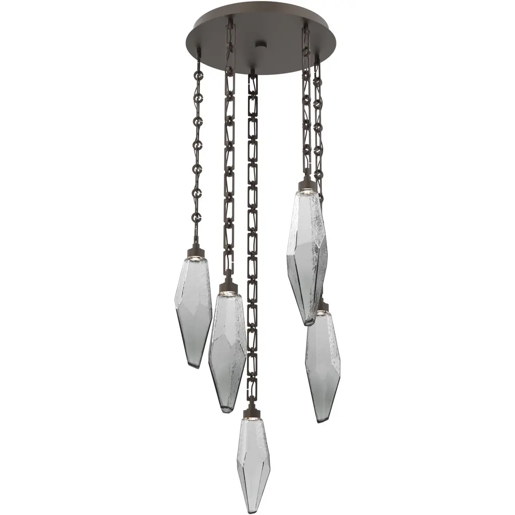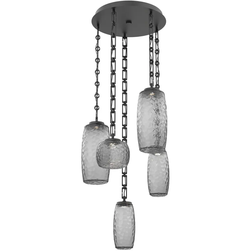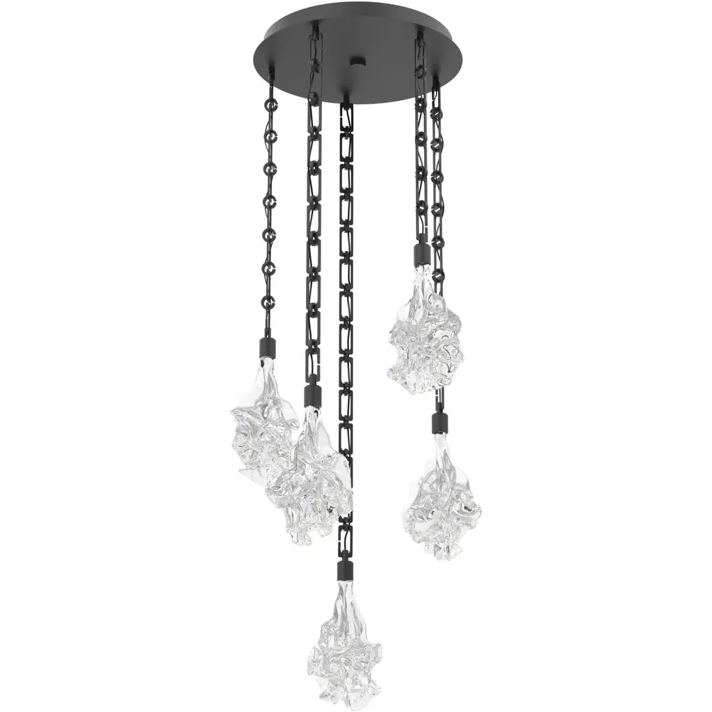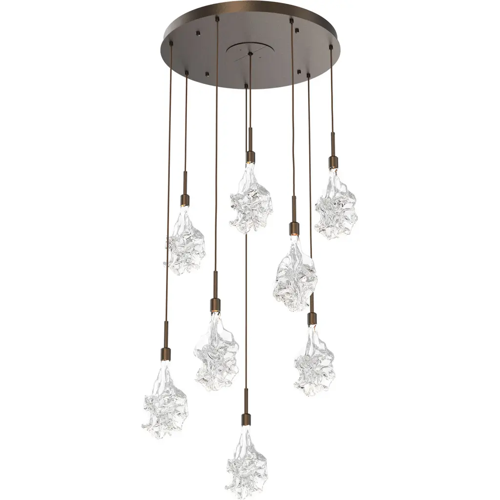 A whimsical celebration of organic design, this inspired round multi-pendant chandelier features 5 Blossom pendants suspended from a round canopy. Each hand-blown Blossom glass shade is a one-of-a-kind artisan creation. Suspension options include cloth-braided cord or handcrafted chain in three vintage-inspired styles.