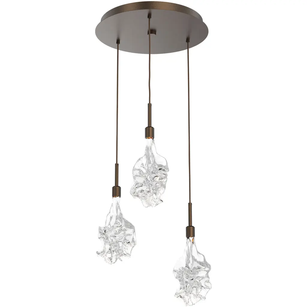 A whimsical celebration of organic design, this inspired round multi-pendant chandelier features 5 Blossom pendants suspended from a round canopy. Each hand-blown Blossom glass shade is a one-of-a-kind artisan creation. Suspension options include cloth-braided cord or handcrafted chain in three vintage-inspired styles.