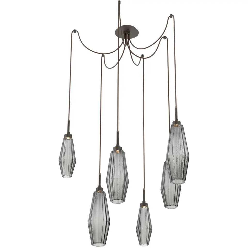 Blossom Linear Multi-Port - 07-Burnished Bronze-Blossom Clear Blown Glass-Bronze Cloth Braided Cord-LED