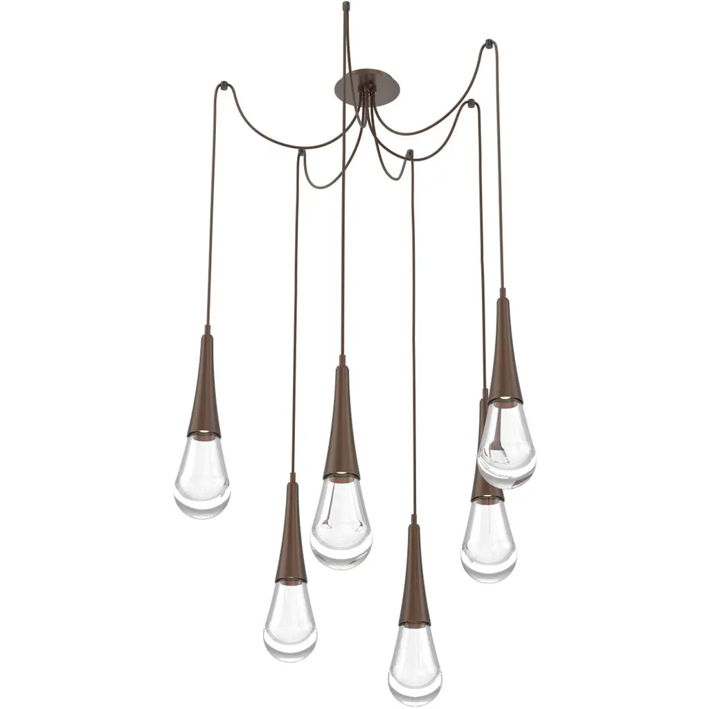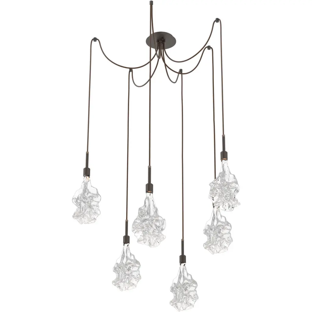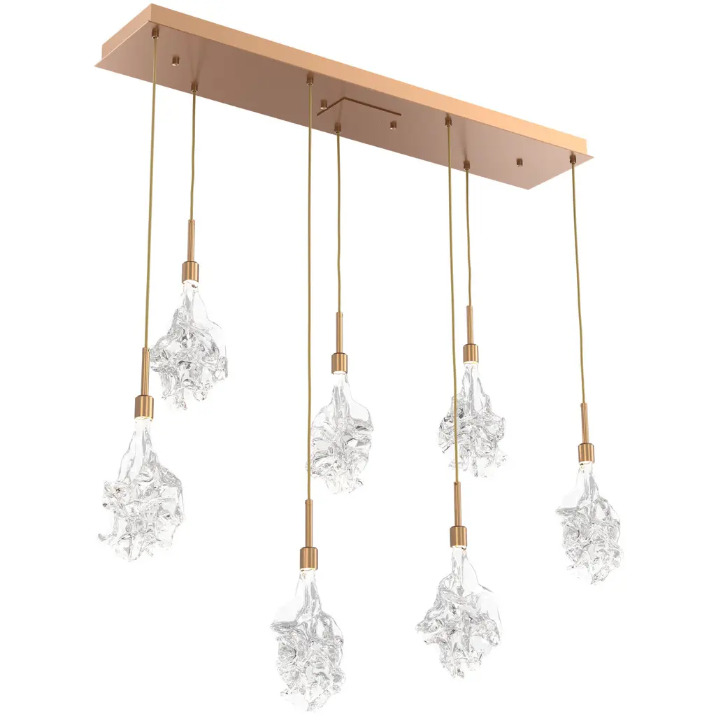 Blossom Linear Multi-Port - 07-Flat Bronze-Blossom Clear Blown Glass-Bronze Cloth Braided Cord-LED