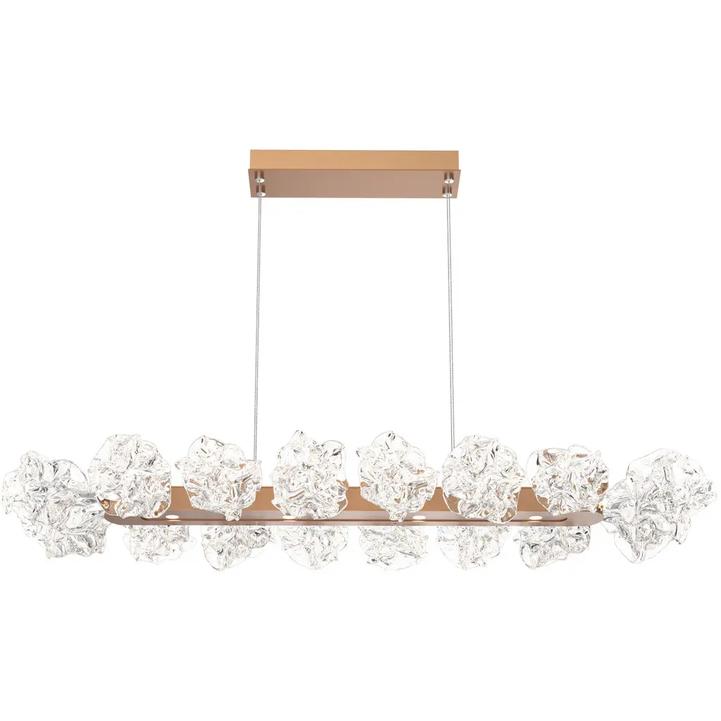 Blossom Linear Suspension 48"W- Graphite- Blossom Clear Blownglass- Stainless Steel Cable-LED