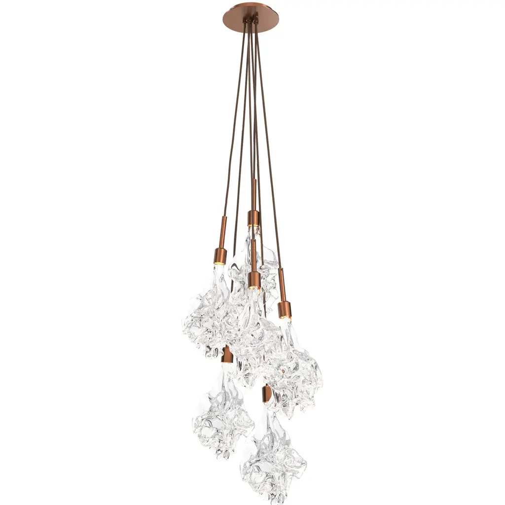 Blossom Modern Branch - 8 pc-Flat Bronze-Blossom Clear Blownglass-Threaded Rod Suspension-LED