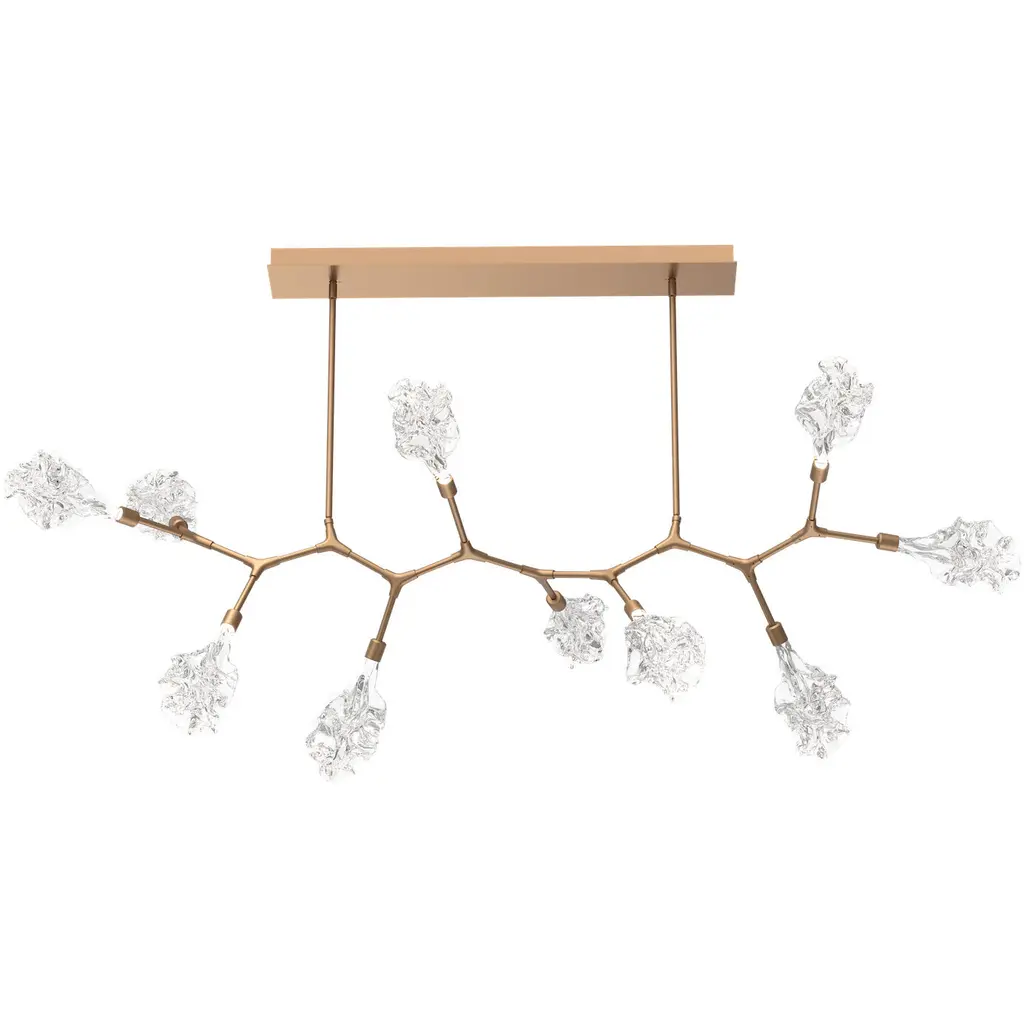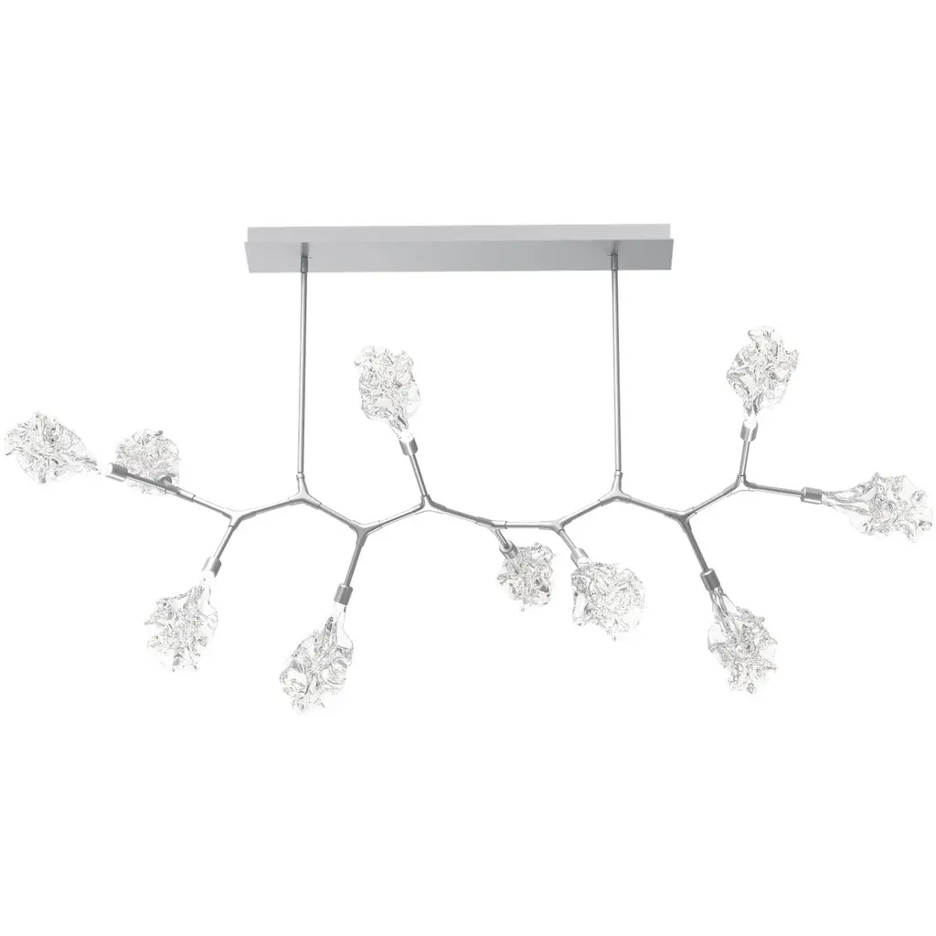 Blossom 10pc Branch-Beige Silver-Blossom Clear Blown Glass-Threaded Rod Suspension-LED 3000K