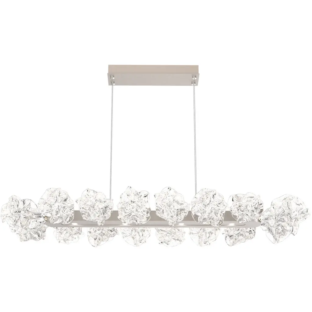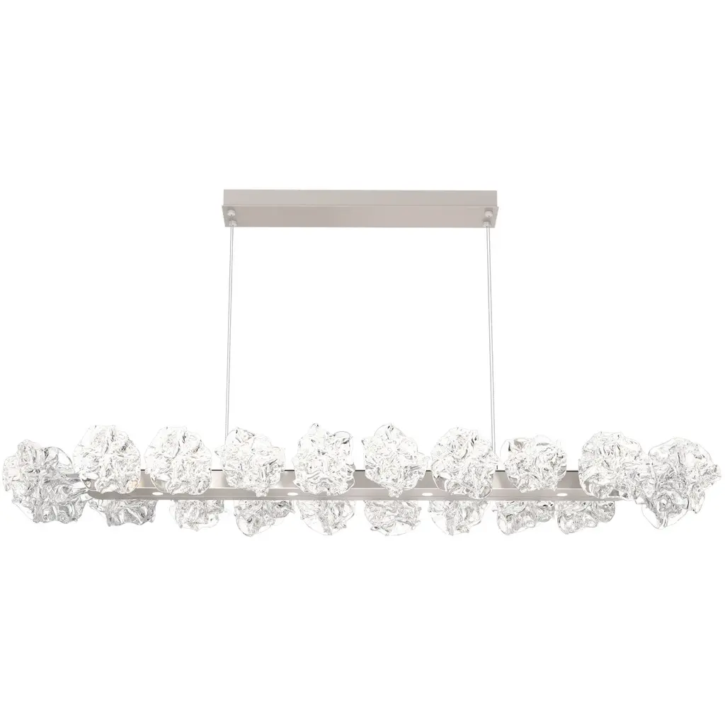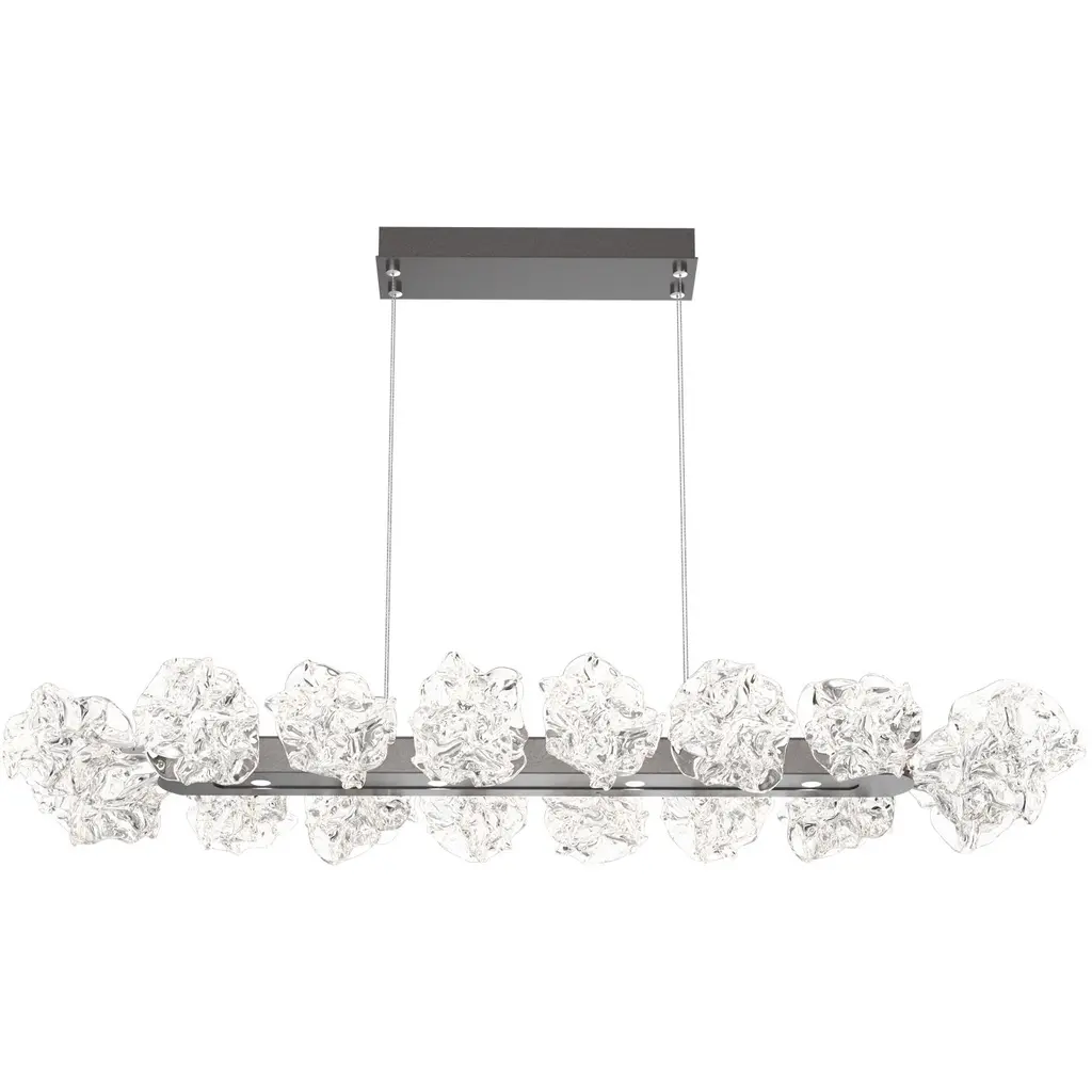 Blossom Linear Suspension 60"W-Burnished Bronze-Blossom Clear Blownglass-Stainless Steel Cable-LED