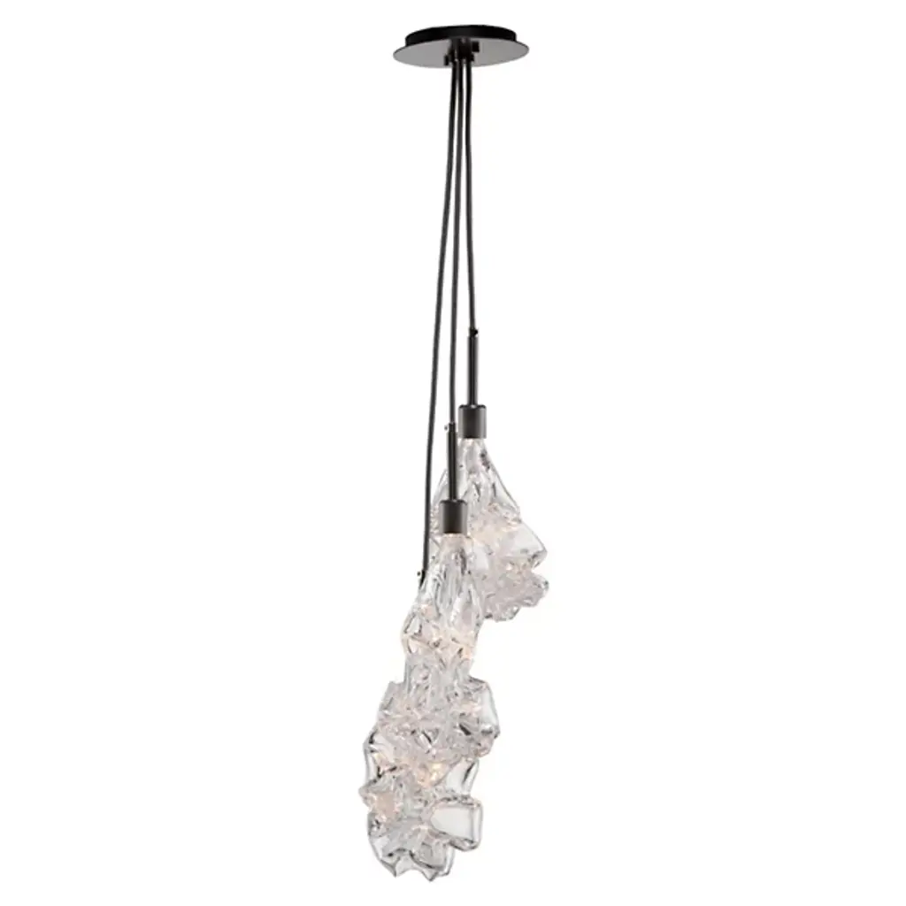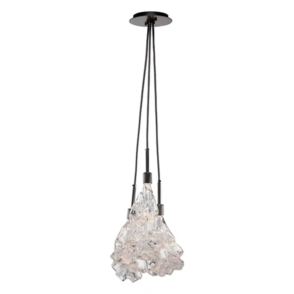 Suspended gracefully like a stunning bouquet of blossoming flowers, creating a visual treat open living spaces will welcome. The flowing, elegant design of the Blossom LED Cluster Pendant is truly one-of-a-kind, made in a glass blowing process by the master craftsmen at Hammerton Studio. Made to mimic the slender quality of a flower's stems, clean wiring drops from a circular canopy with sharp metal lamp holders. Erupting out are sculptural clear blown-glass shade, fascinating at every angle. LED light produces a clean ambient glow that touches the piece with tasteful highlights.