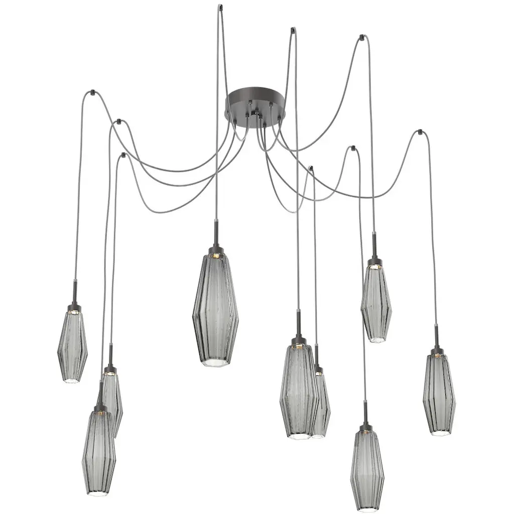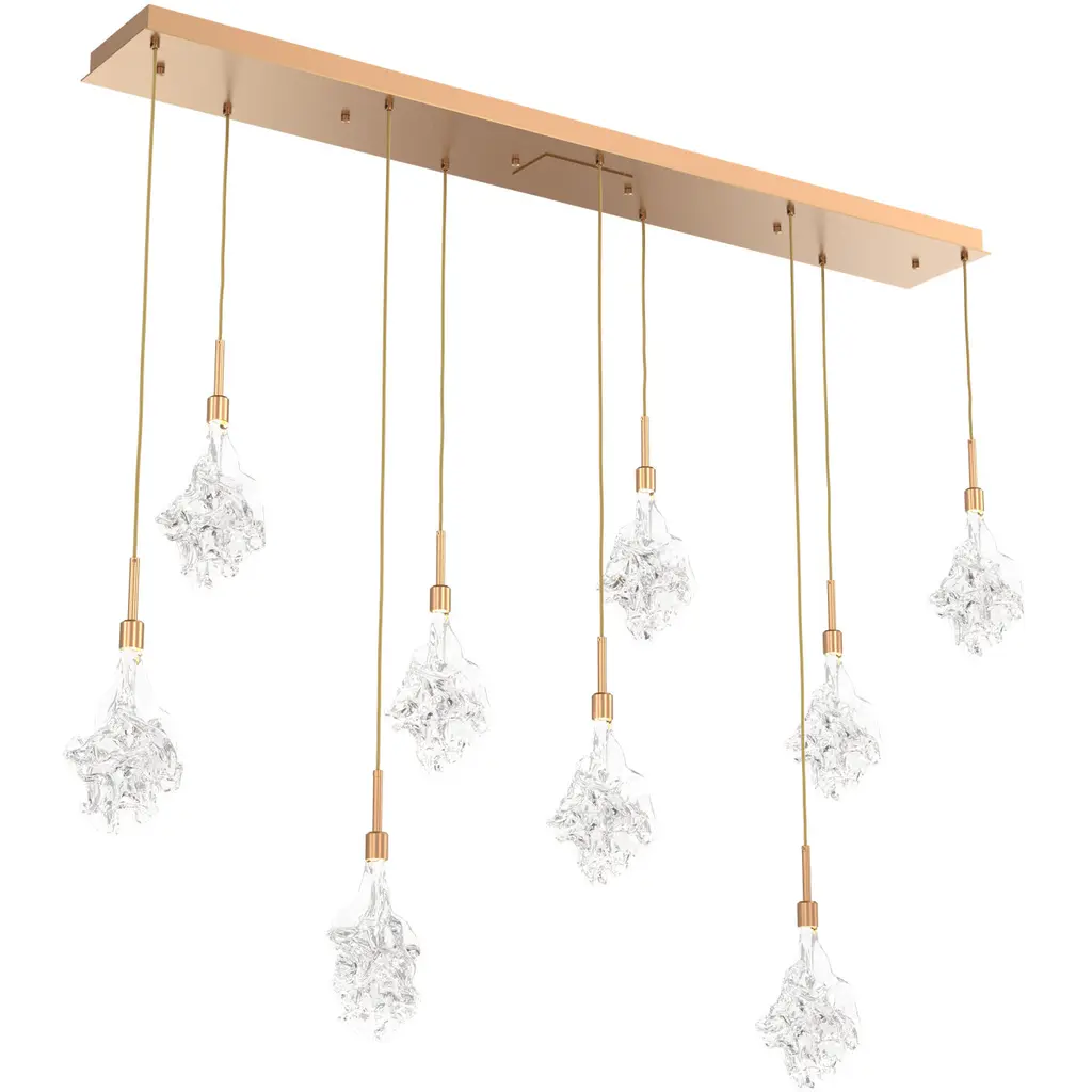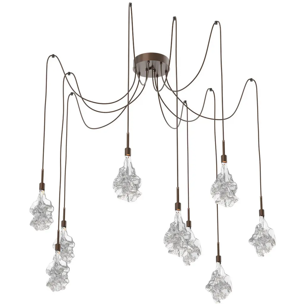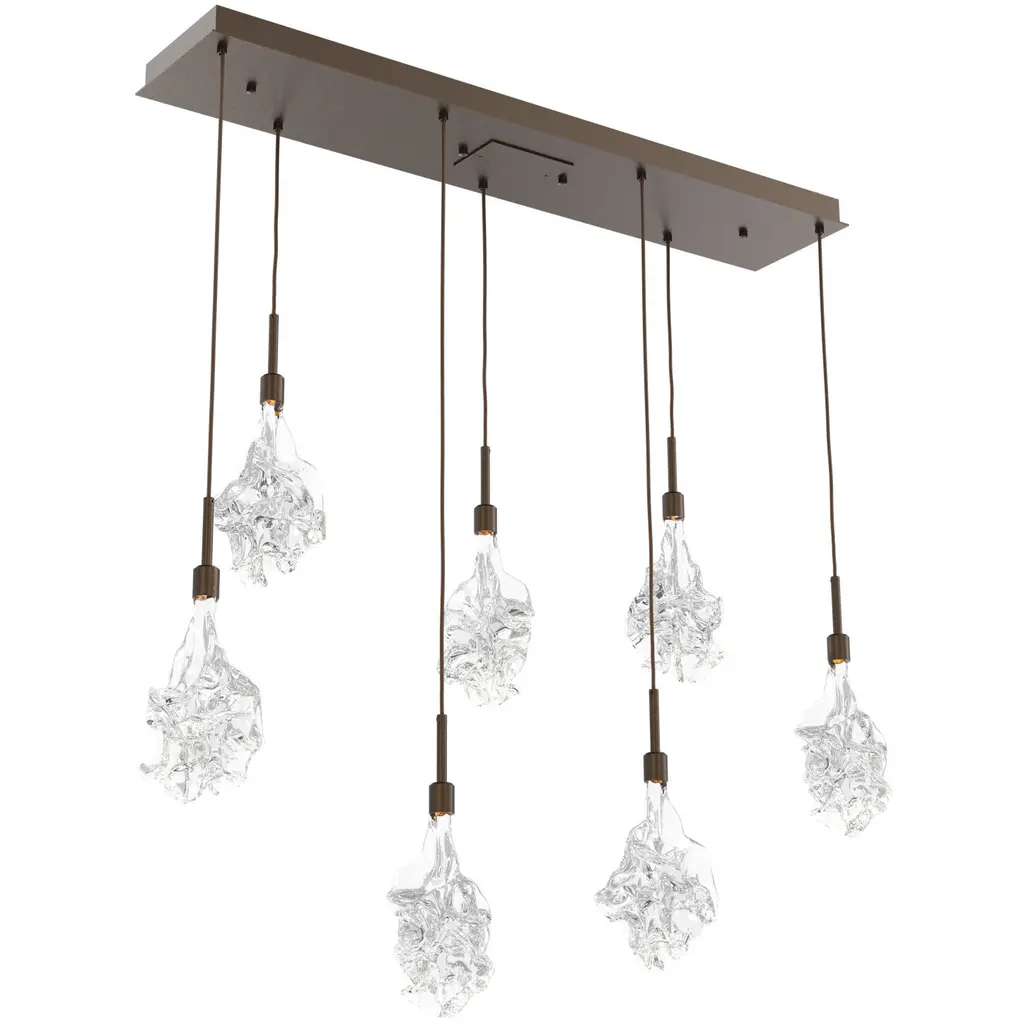 Blossom Linear Multi-Port - 09-Flat Bronze-Blossom Clear Blown Glass-Bronze Cloth Braided Cord-LED