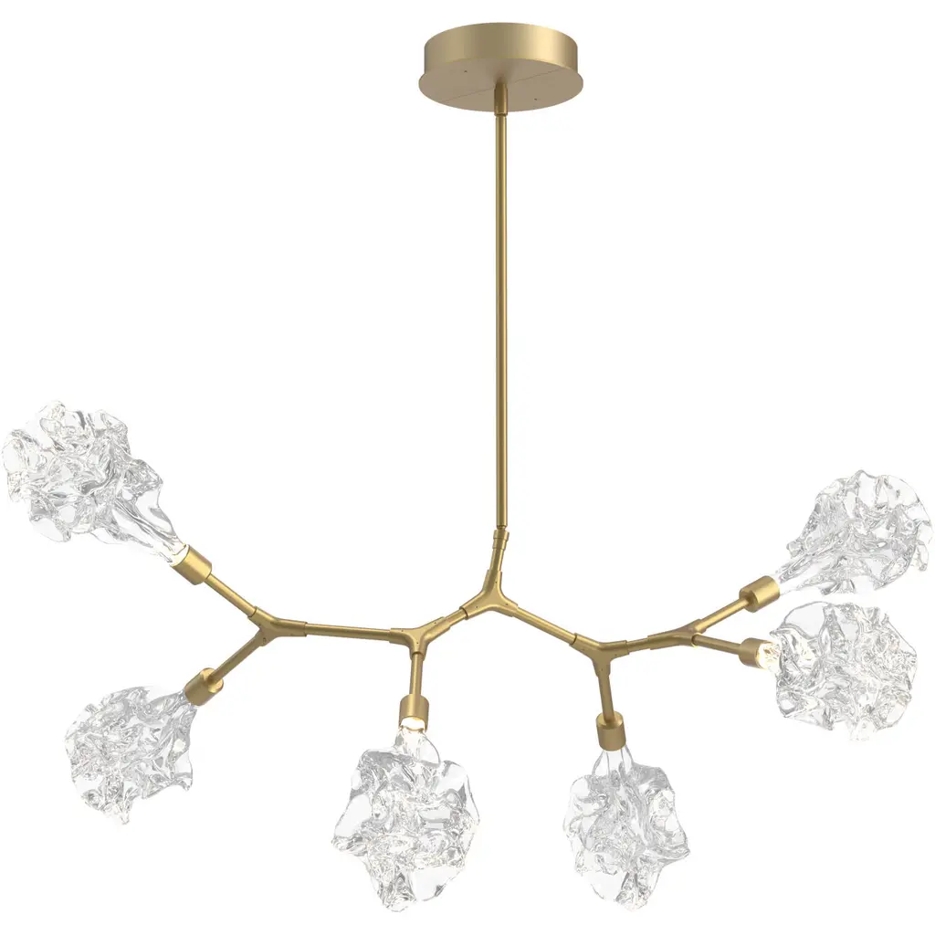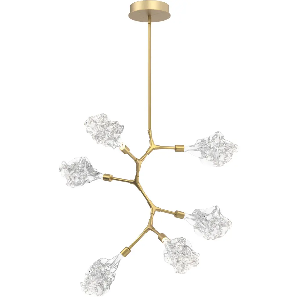 Blossom 10pc Branch-Gilded Brass-Blossom Clear Blown Glass-Threaded Rod Suspension-LED 3000K