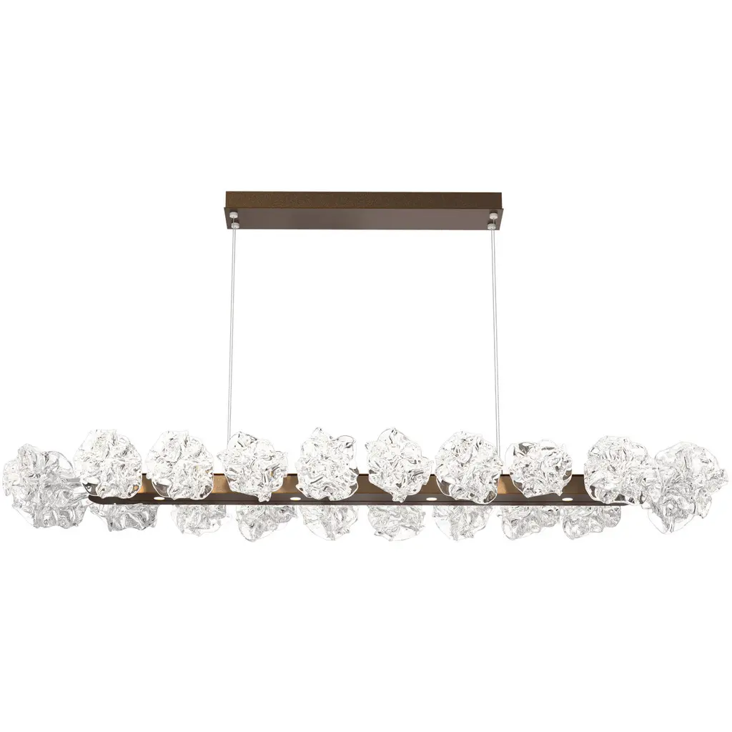 Blossom Linear Suspension 60"W-Novel Brass-Blossom Clear Blownglass-Stainless Steel Cable-LED