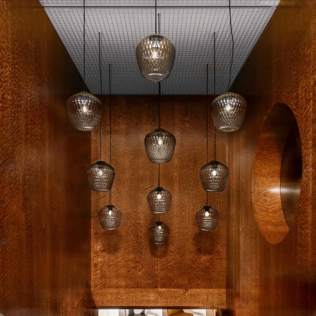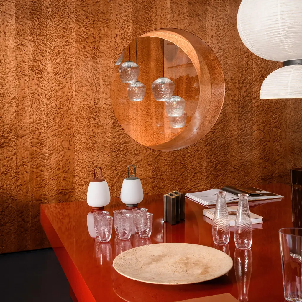 Before applying 3D technology, Samuel Wilkinson studied forms as varied as antique ceramics, old glass pieces and the texture of a raspberry. The inflation of each glass bubble came about then by way of 3D software to reach the best control of how the light would be refracted at diverse angles. No surprise that the London-based industrial design whiz gathered deserved acclaim at the London Design Festival for this mouth-blown Blown SW3 Pendant for Danish house &Tradition. The arresting quilted surface comes in 2 versions that produce distinctly opposite effects: a sandblasted matte opaque white that emits a subtle, sophisticated glow; or a burnished translucent silver luster that reveals intricate textures and patterns of light.
