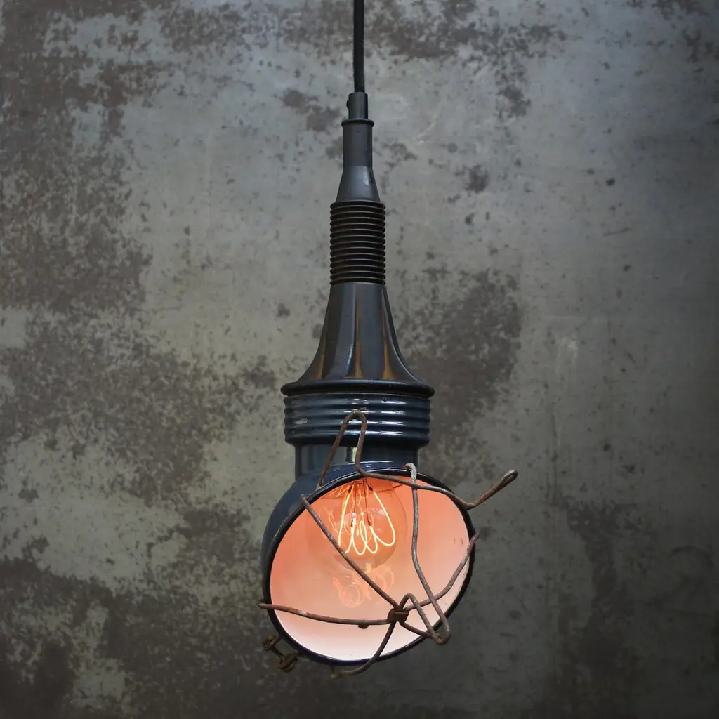 Blue Enamel Vintage Industrial Work Lights Pendant Lamps