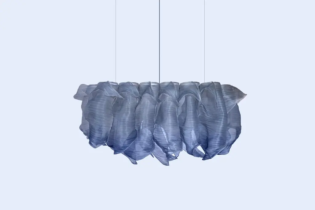 Blue nebula grande hand-painted pendant lamp by mirei monticelli dimensions: d 150 x w 50 x h 60 cm materials: banaca fabric also available in hand-painted fabric. The lamp is made in banaca fabric and carefully constructed to create this intricate spiraling shape. The pliability of the constructed fabric lets it have a life on its own. They can also be reshaped to the owners liking. Mirei is a milan-based multidisciplinary designer who started her career in her birth place, the philippines. Working from her roots has exposed her to the world of traditional manufacturing and production of furniture, where everything is made by hand. This environment exposed her to the beautiful world of artisan crafts, but then gave her the yearning to explore state-of-the-art techniques that come from the western world – which led her to study at politecnico di milano with a masters degree in design and engineering in 2017. In 2019, she founded studiomirei. On the same year, she won the salone satellite special mention award for the nebula lamp during the salone del mobile. up to 250v (europe/uk standard).