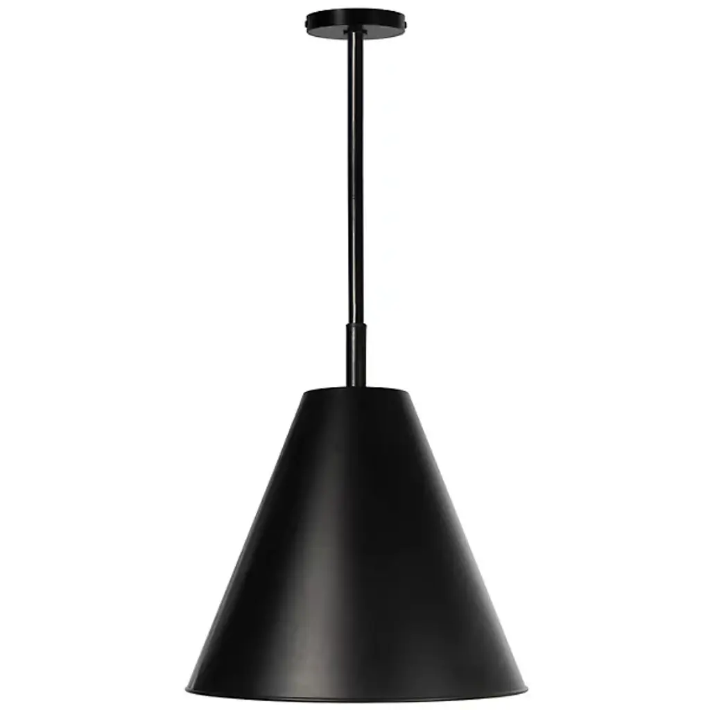 Extend the afternoon patio conversations deep into the night with the Bluff Outdoor Pendant from Regina Andrew. The pendant’s clean geometric design feels natural with a range of home styles. You can get creative with its placement as it mounts to the ceiling with a compact canopy and a slender down rod. No need to check on the pendant when it pours outside as its powder-coated metal construction keeps it solid and ready to perform. The sleek cone shade engulfs the bulb inside, giving you a pleasing glare-free experience. Light pouring out the shade’s wide opening provides a comfortable down glow.