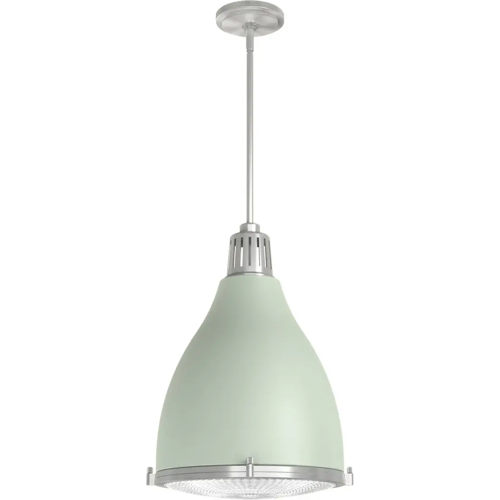 Make your space pop. The Bluff View 16-inch pendant brings a subtle, retro aesthetic to an industrial form with its metal detailing and cool colors. This oversized pendant’s clean lines and modern touches make it the perfect addition to contemporary and transitional spaces. When installed in pairs, this pendant really shines.