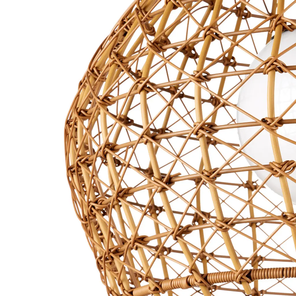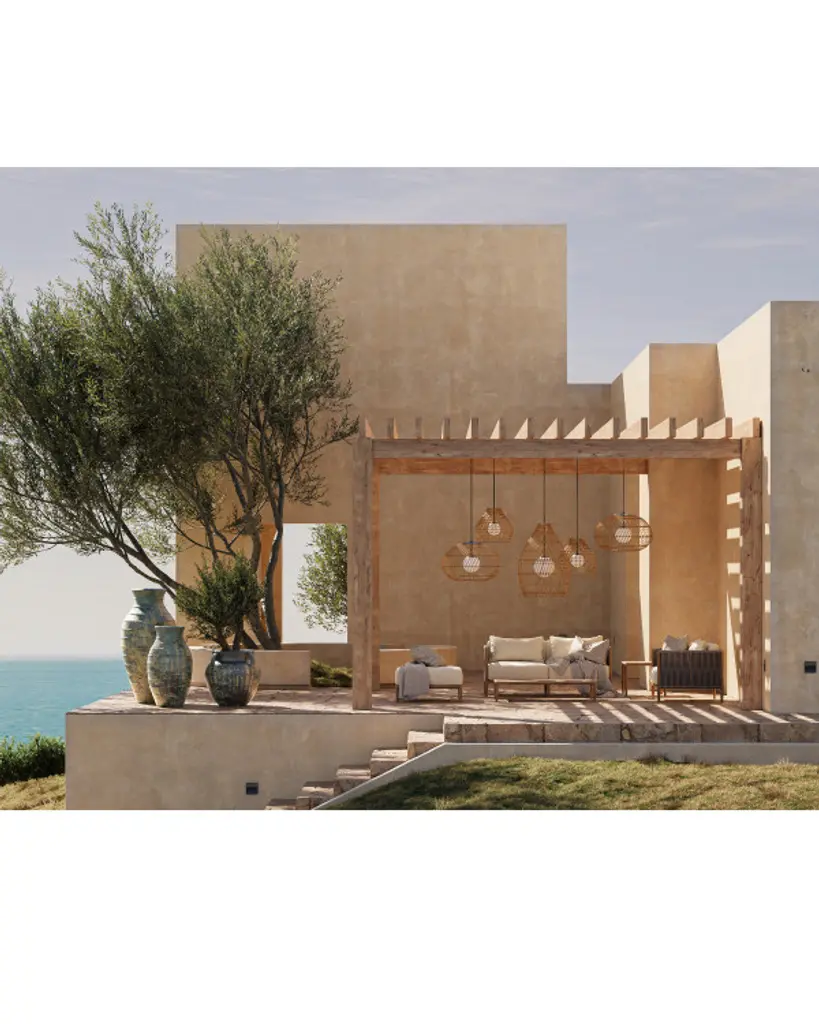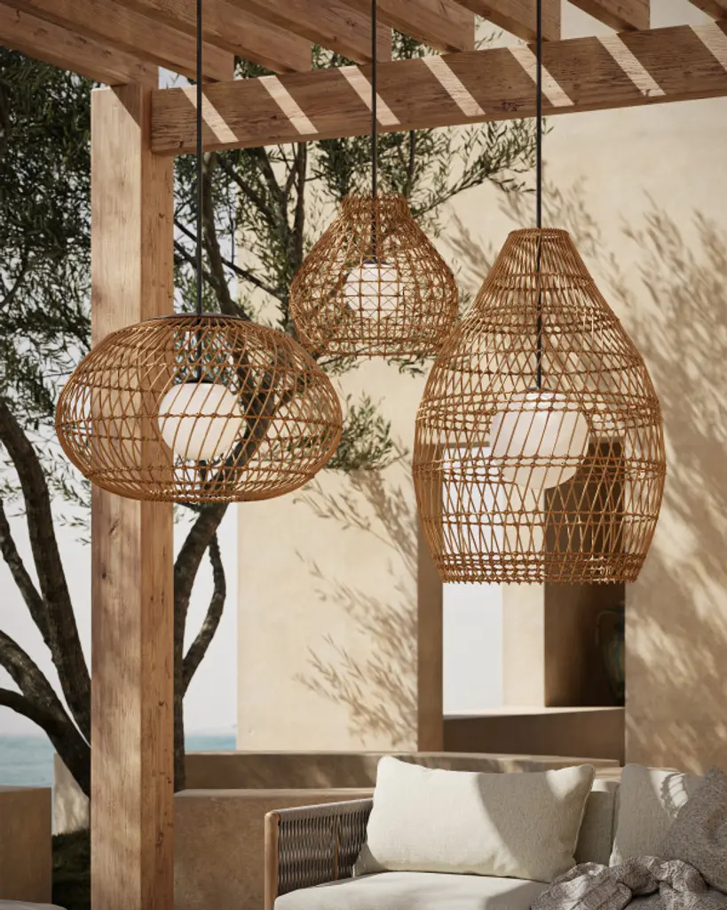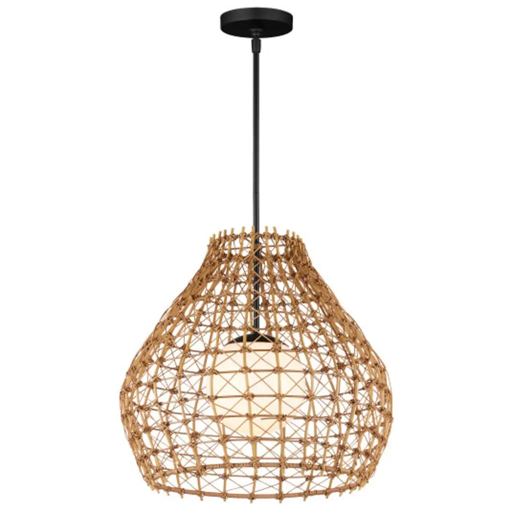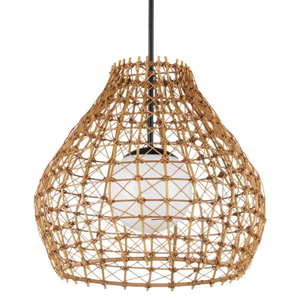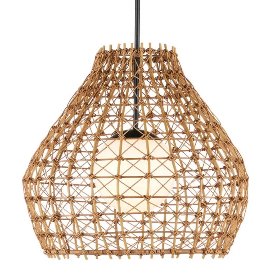 The Bly Outdoor Pendant brings artisanal charm to exterior spaces with its eye-catching crisscross pattern, meticulously woven from all-weather synthetic wicker. The large-scale design offers a handcrafted look, while the intricate weave adds depth and texture that feels both refined and relaxed. A powder-coated metal frame ensures durability and contrast, and the pendant is wet-location tested. Adjustable from 25" to 66.5" with the use of the included chain/rod kit/cable.