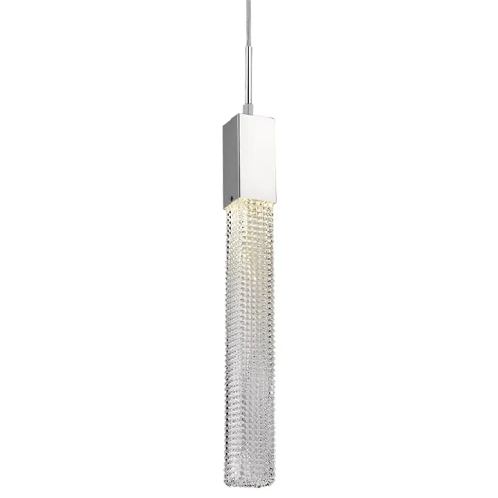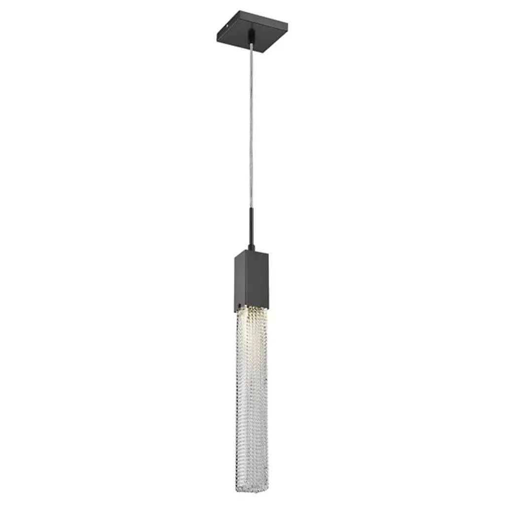 Minimalist form with a dazzling flair. The Boa HF1901 Mini Pendant by Avenue Lighting is a simple solution to elevating the visual clarity and style of a prominent space in your home. Its rock studded Crystal shade suspends gracefully from a square Iron canopy and houses an energy efficient LED light source. Available in a variety of shiny and beautiful finishes, this mini pendant’s beauty and captivating glow are sure to delight anyone who catches a glimpse.