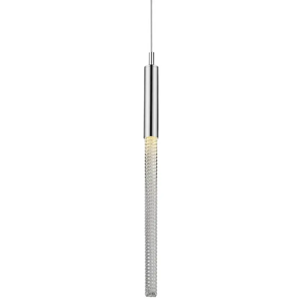 Elongated elegance. The Boa HF2020 Mini Pendant by Avenue Lighting is sleek yet stately, showcasing a slender hobnail rock studded Glass profile that hangs suspended from a round Iron canopy. Onboard tubular LED technology also offers glare free illumination, making this mini pendant the perfect balance of cutting edge form and peerless function. Hang it in an otherwise ordinary room and watch as your space transforms into a haven of style, warmth and welcoming atmosphere.