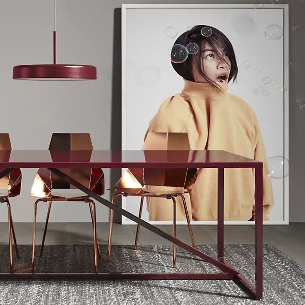 Like a sunset on a California road trip. The Bobber LED Pendant from Blu Dot is a beautiful light source that has some unexpected hues to offer. It has a powder-coated steel construction in order to give this piece long-lasting durability and strength. It has an integrated LED light source, which is convenient because you don't need any bulbs, and it is dimmable with a LED-dimmable light switch. It also has a simple design that allows it to blend seamlessly in with any space, regardless of decor. The opaque Acrylic diffuser creates a warm, even light meant to soothe and relax.