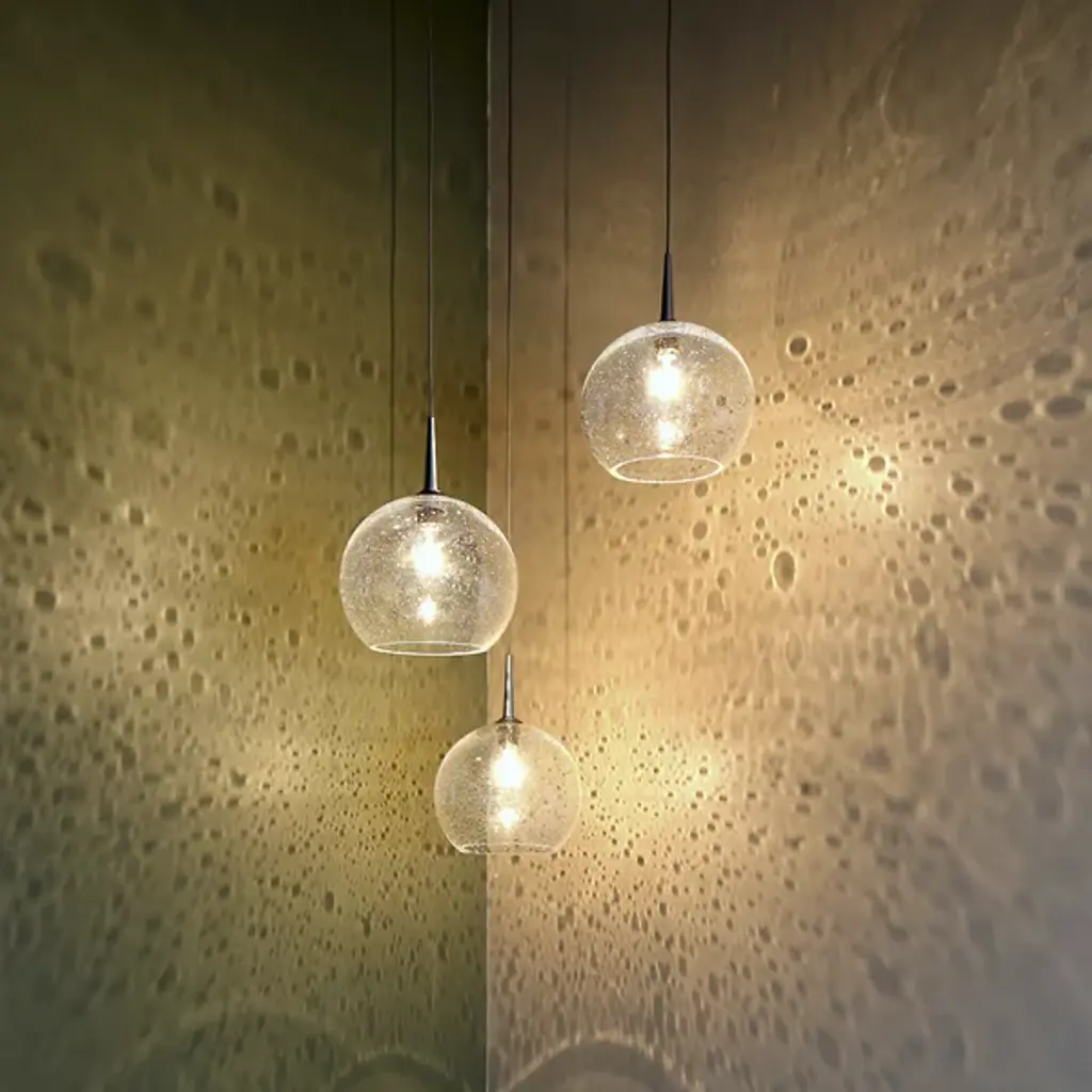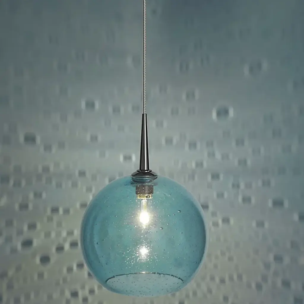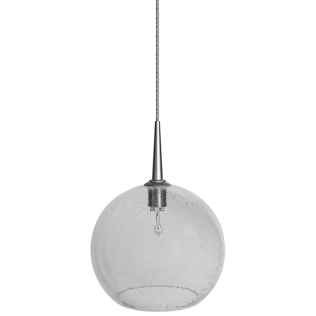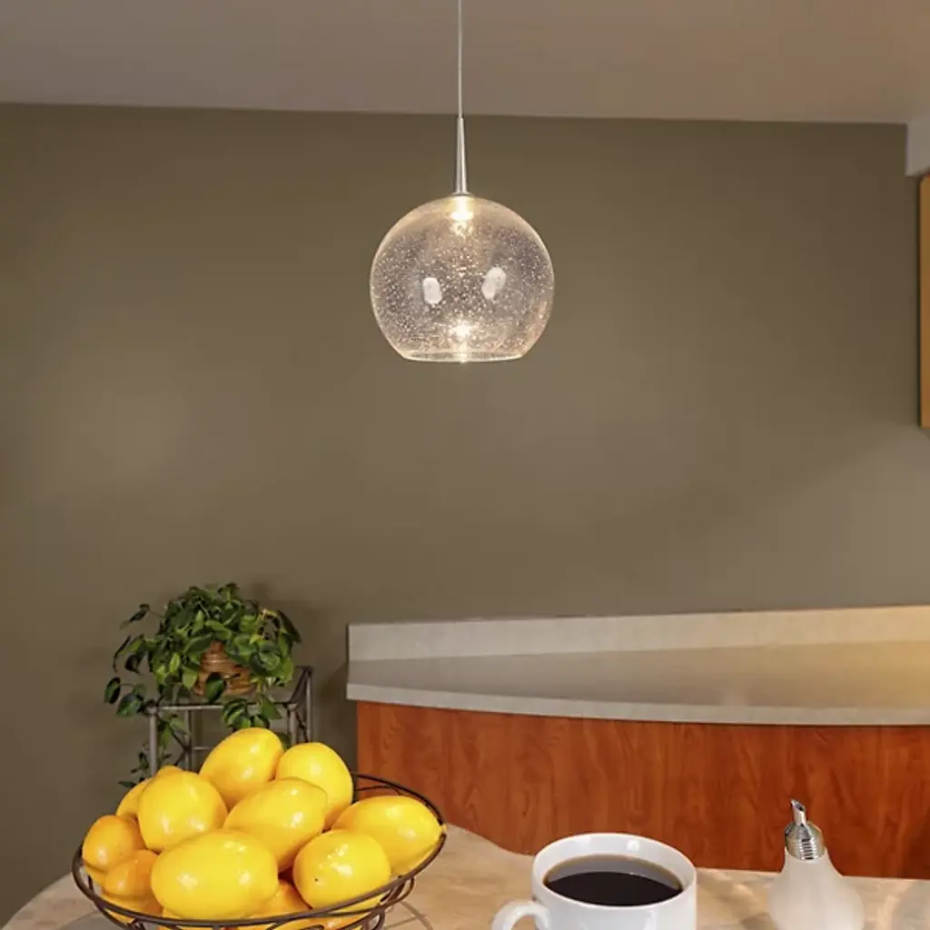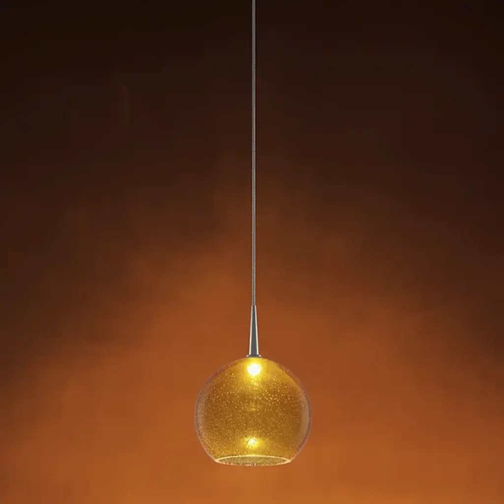 Sleek and sparkly with modern appeal. Tiny bubbles embedded in the handblown Artisan Glass shade of the Bobo 2 LED Mini Pendant by Bruck Lighting result in a stunning lighting effect that embodies the design philosophy of "less is more." From a distance, its subtleties aren't given away and its contemporary aesthetic makes it a great fit for modern kitchens, hallways, foyers and living rooms. The Metal base is tapered and especially slim to bring more attention to the orb-like shade and its bubbly texture. When mounted in a series above a mini bar, dining table or kitchen island, its minimalist design lends an effortlessly stylish air about this fixture.