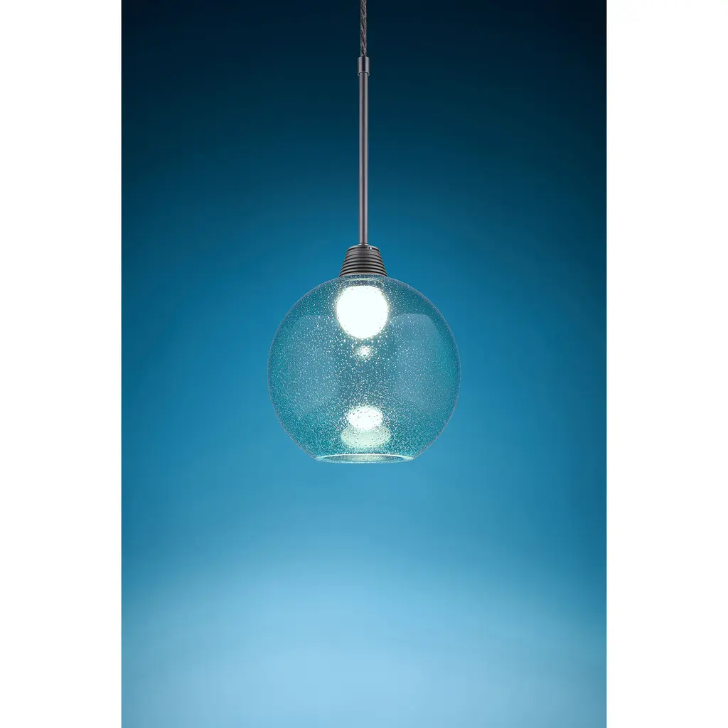 Bobo 3 Led 8.5 Inch Matte Chrome Pendant Ceiling Light In Aqua Glass