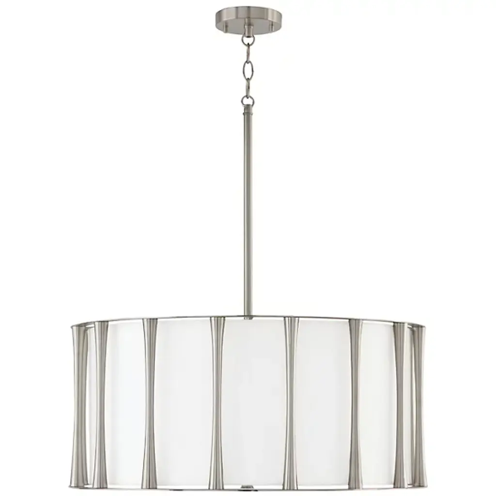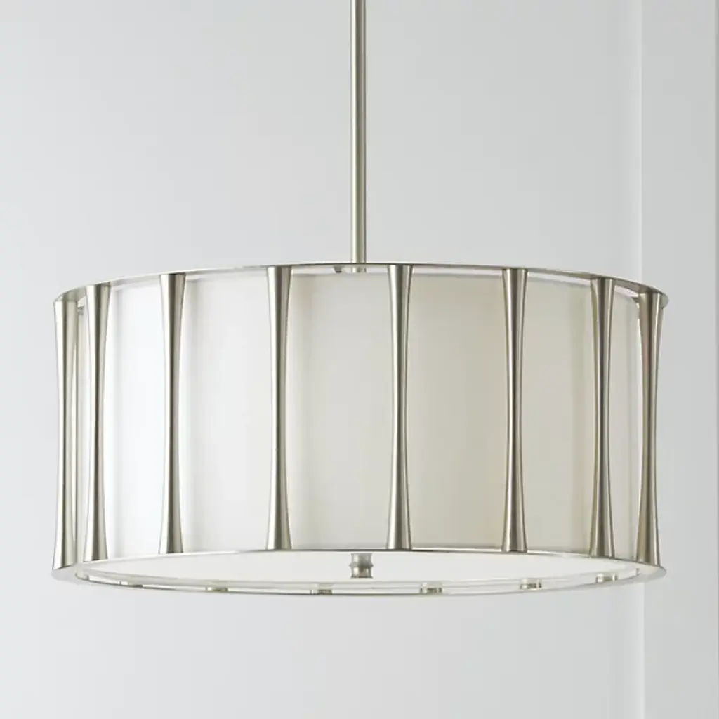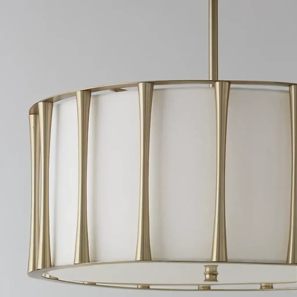 Soft and statement-making, the Bodie Pendant by Capital Lighting adds a layer of luxury to your mid-century modern living space. The tapered columns frame a tailored fabric shade, creating a sophisticated luminaire to match your style. The Bodie Pendant’s drum-shaped frame allows bright light to effortlessly splay throughout your environment.