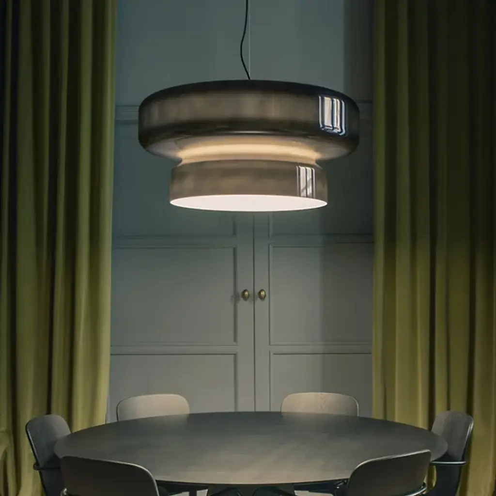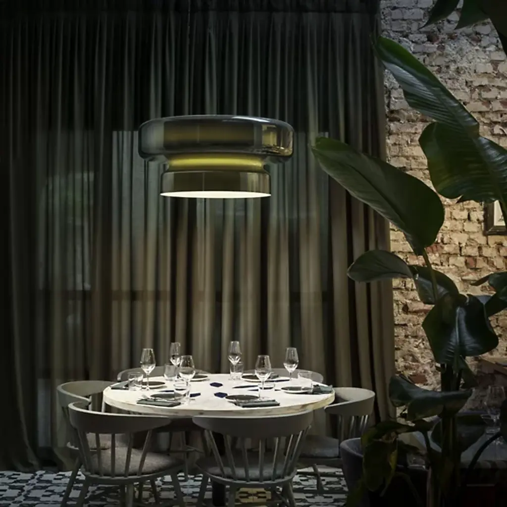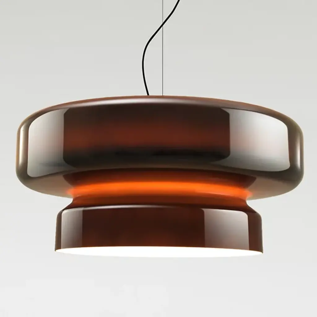 A striking silhouette with a warm glow. The Bohemia Pendant by Marset has the sleek, dynamic look of blown glass but boasts practical durability thanks to its colorful Polycarbonate shade. Crafted with exaggerated curves, the shade's translucent nature allows for an arresting glow in addition to providing ample downward light. A crisp White interior prevents any color bleed and creates bright, clean light that can be easily controlled with the built-in dual dimming feature. Bold and modern, this pendant is a minimalist statement piece worth adding to entryways, dining spaces and more. Its large size makes it an effective overhead accent whether hung solo or in groups.
