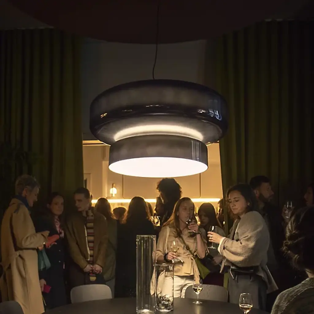 A striking silhouette with a warm glow. The Bohemia Pendant by Marset has the sleek, dynamic look of blown glass but boasts practical durability thanks to its colorful Polycarbonate shade. Crafted with exaggerated curves, the shade's translucent nature allows for an arresting glow in addition to providing ample downward light. A crisp White interior prevents any color bleed and creates bright, clean light that can be easily controlled with the built-in dual dimming feature. Bold and modern, this pendant is a minimalist statement piece worth adding to entryways, dining spaces and more. Its large size makes it an effective overhead accent whether hung solo or in groups.