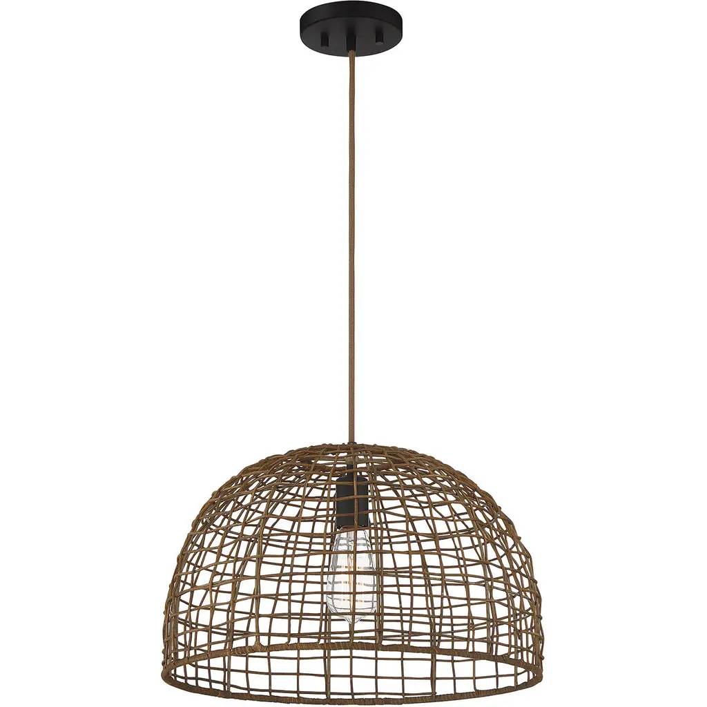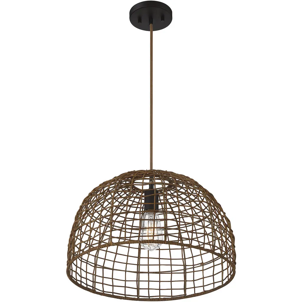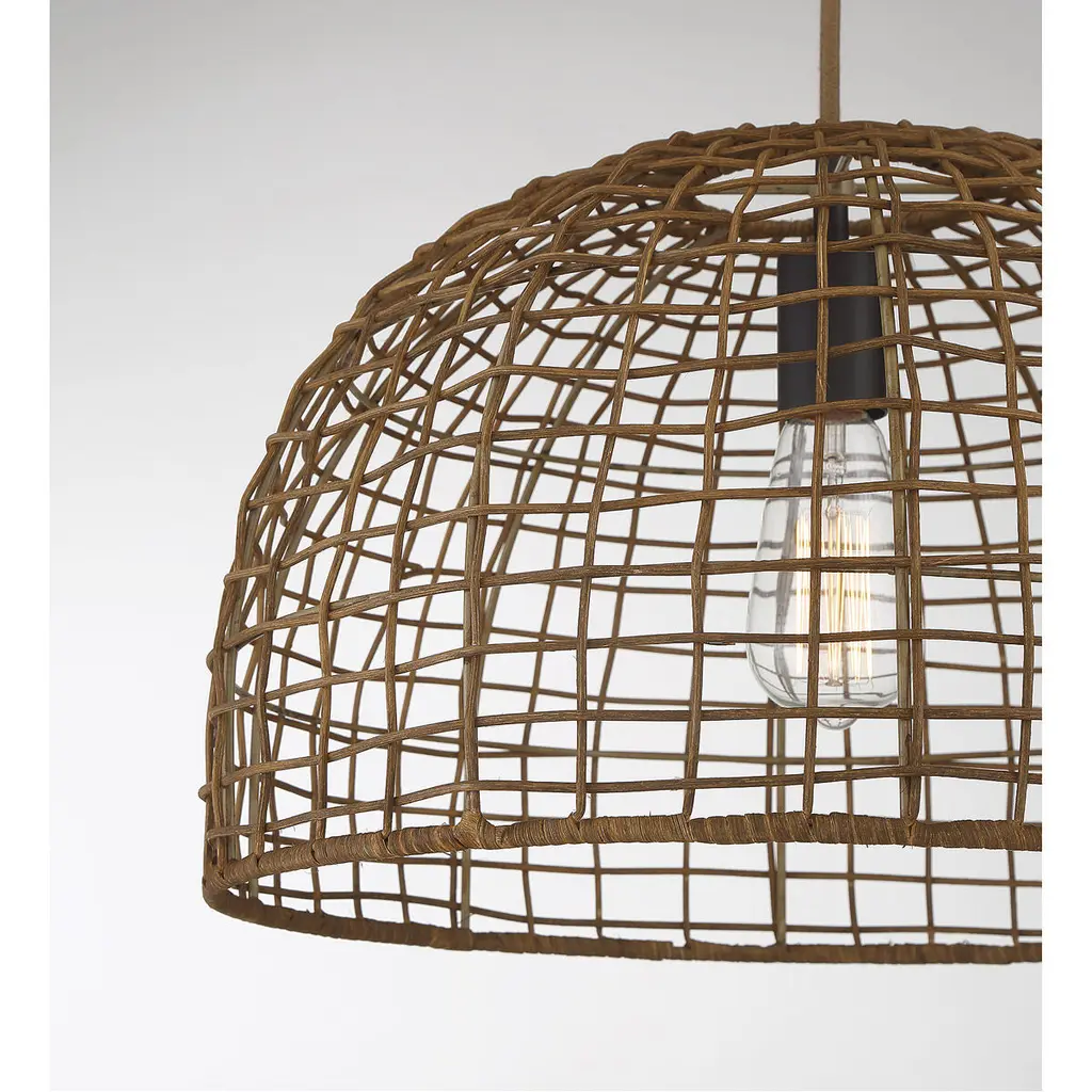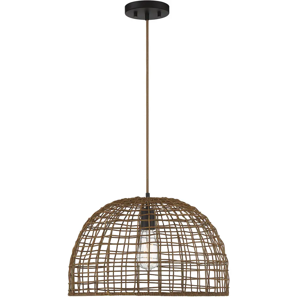 Bring a nature-inspired lighting look to your home with this 1-light pendant from Meridian. It flaunts a dome-shaped shade of dark rattan for an intriguing and highly textured look. The light and the dark brown-finished socket shine through this shade, bringing in two-tone appeal. It is great for brightening up rooms with bohemian, farmhouse and rustic decor styles. This pendant is 12" in height and 18" in width, plus it comes with 120" of cord to let you adjust the hanging height. This pendant uses 1 standard size bulb of up to 60 watts, is LED compatible and is dimmable.