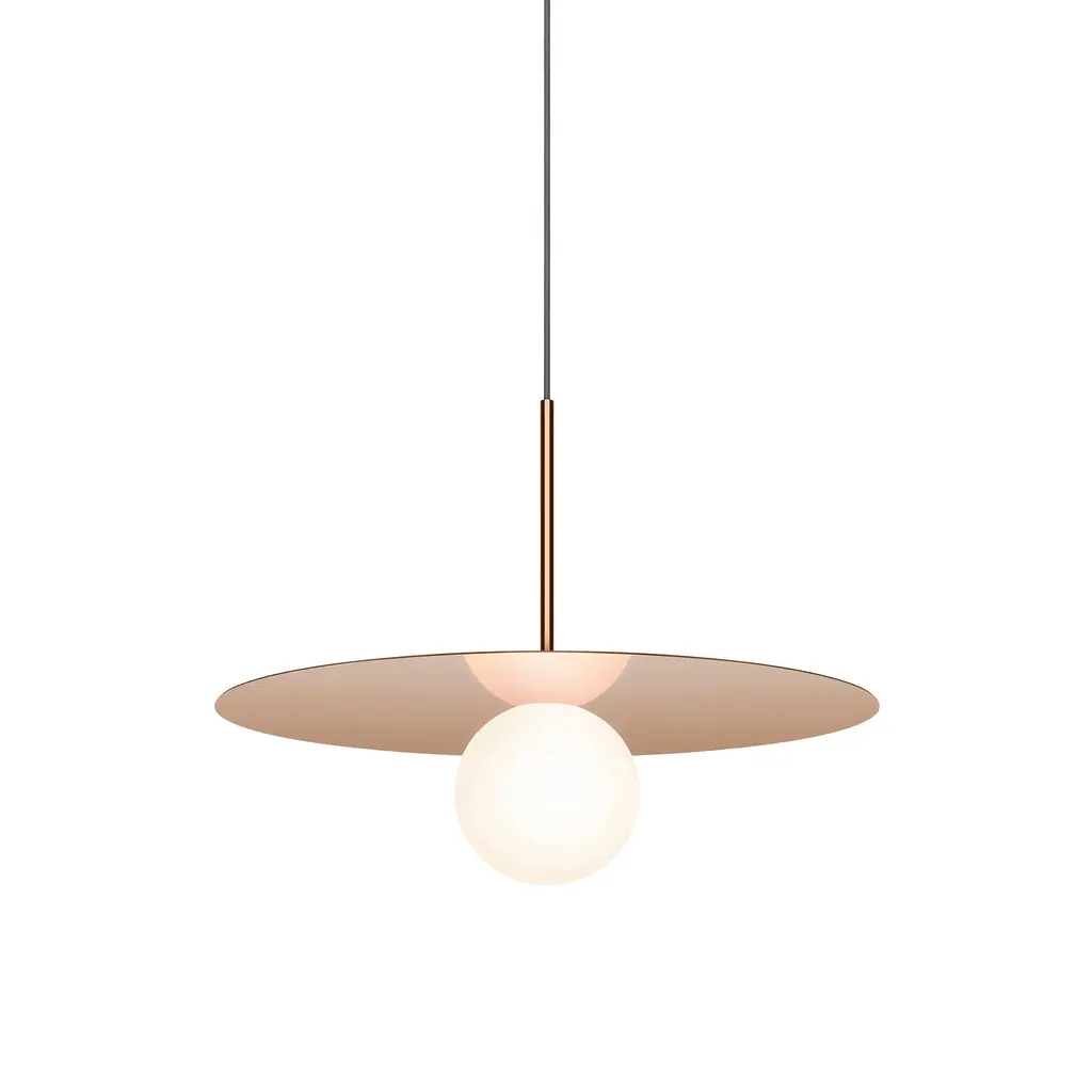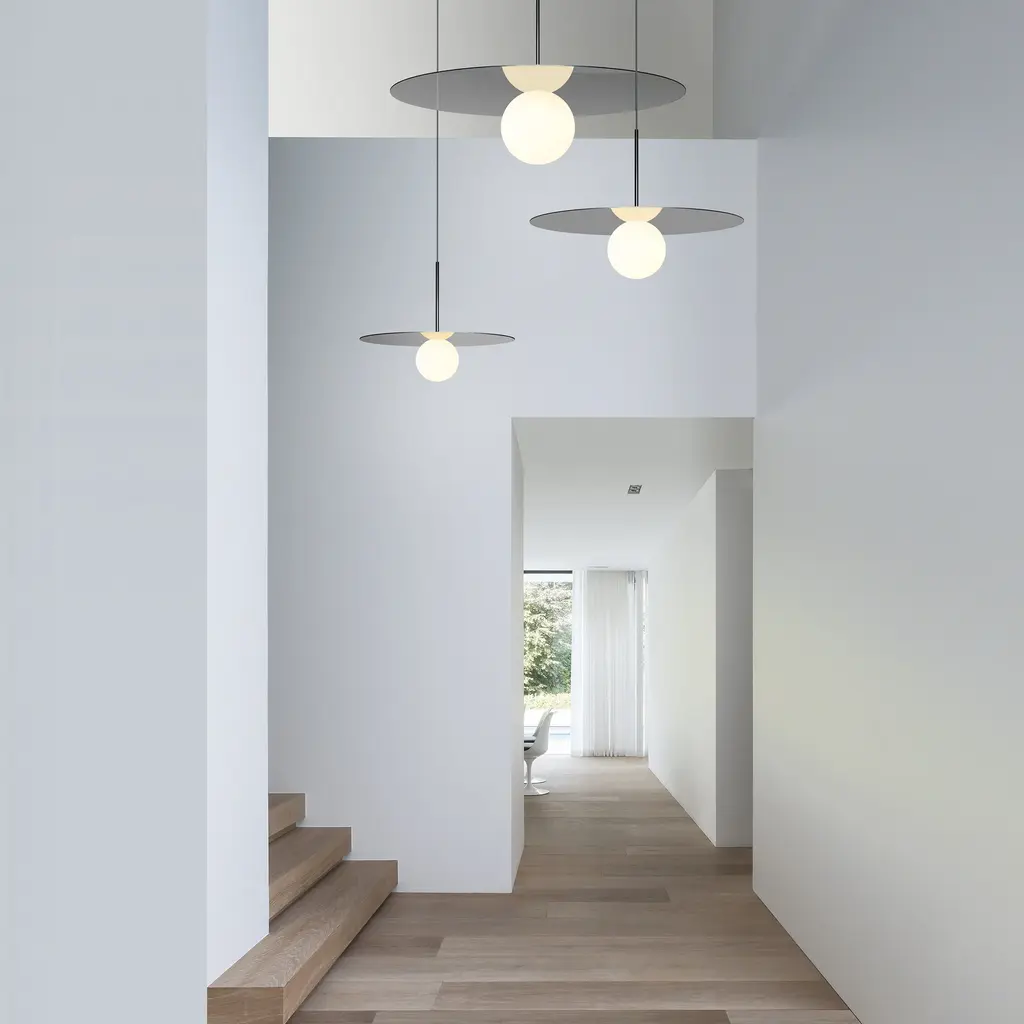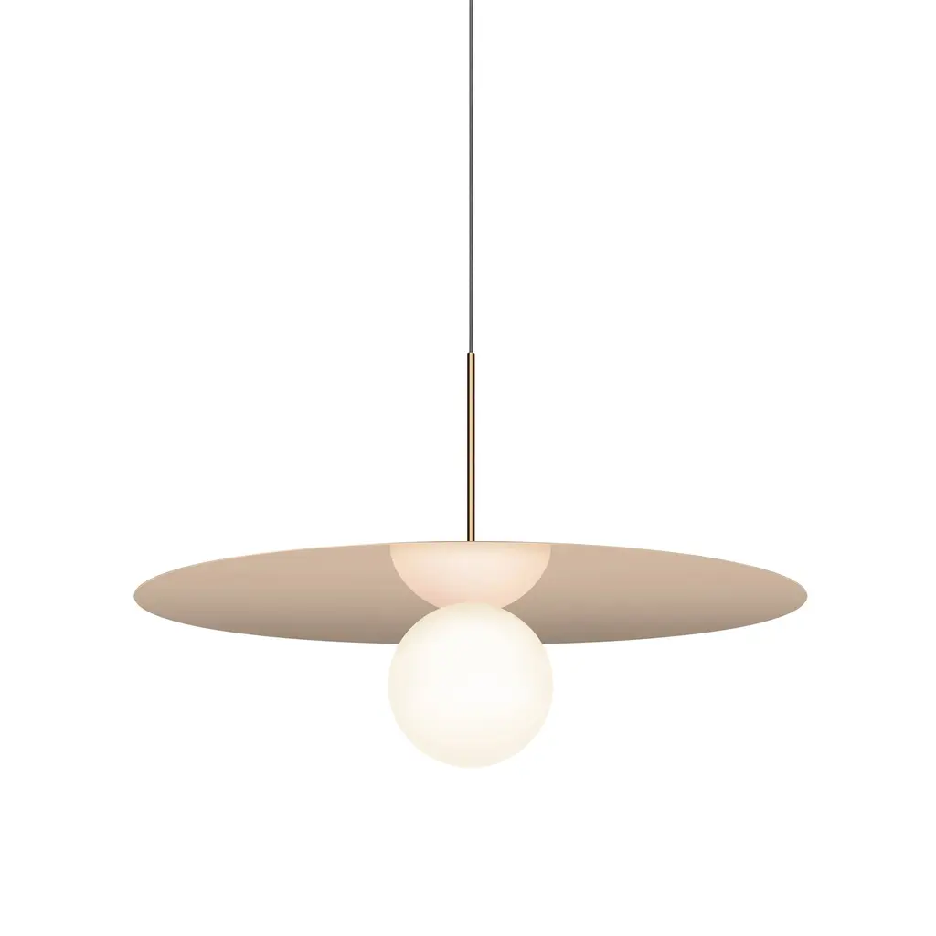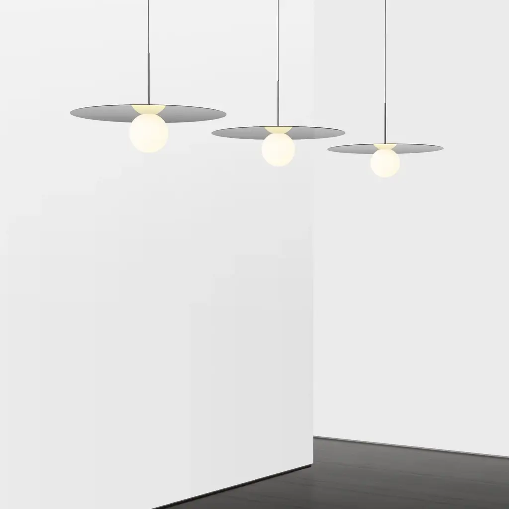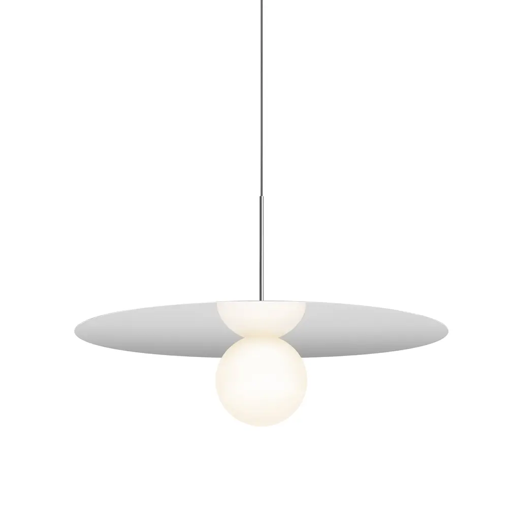 With a circular reflector mirroring its surroundings, Bola Disc gives off a pleasing illusion of weightlessness in an LED pendant fixture. From modern lighting masters Pablo, it provides warm, uniform and ominidrectional illumination that is fully dimmable. In 4 distinct sizes, Bola features a globe diffusor in opaline glass with highly polished disc in chrome, brass, rose gold or lacquered whiteÑand a versatility that allows it to shine on its own or in clustered arrays.