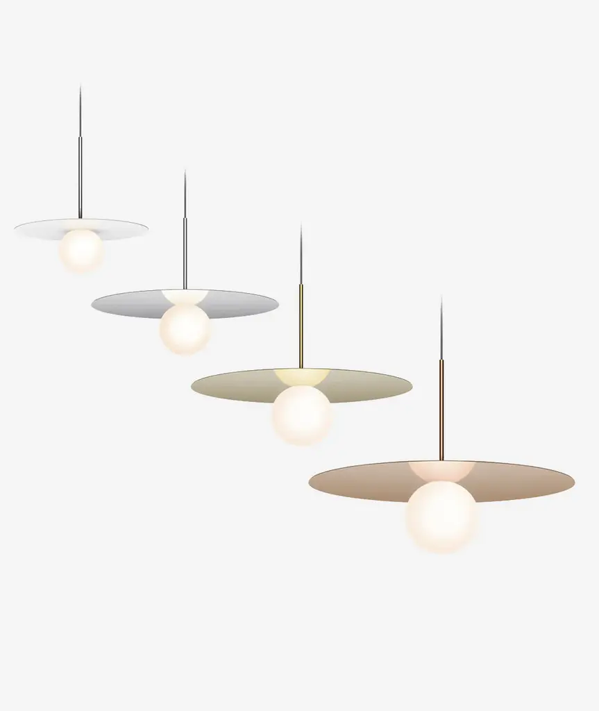 Bola Disc is a uniquely expressive LED Pendant system featuring a distinctive range of chromated disc reflectors that give the illusion of weightlessness by mirroring its surroundings. Available in 4 distinct sizes, Bola Disc pairs an elegant globe diffusor made of opaline glass with exquisitely polished stainless steel or aluminum discs in chrome, brass, rose gold and lacquered white to appease the most discerning tastes. *For multi-light solutions, shop here.