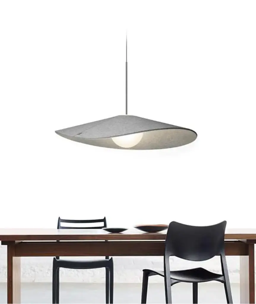 Bola Felt's shade rests elegantly over its opaline glass globe diffusor allowing the user to tilt the shade to multiple angles to focus light. Bola's thick felt shade also offers excellent acoustical properties making them perfectly suited for use over dining applications as well as social gathering areas where sound control is beneficial.