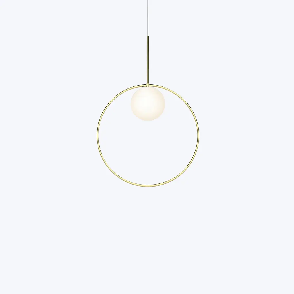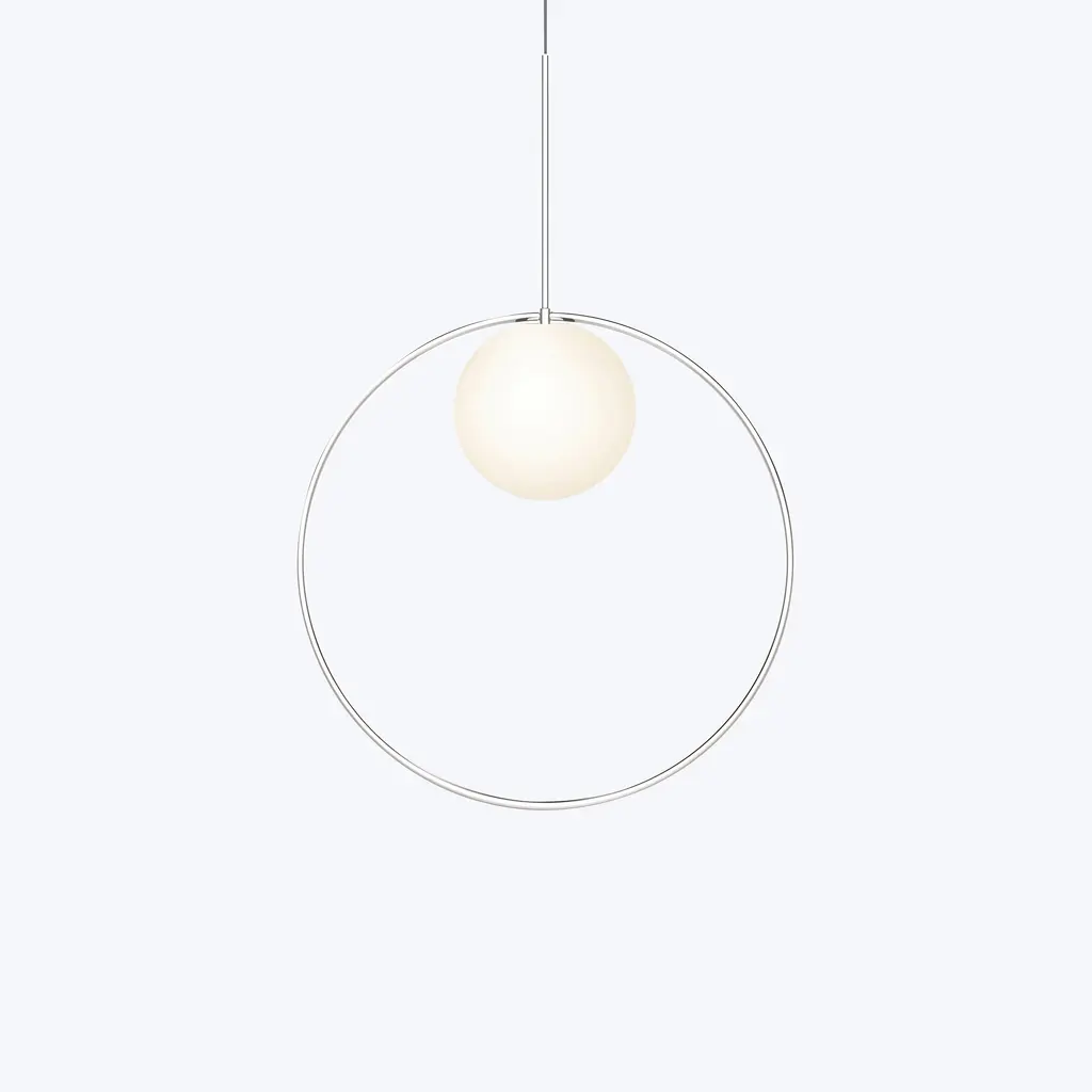 Taking its inspiration from pendant jewelry, Pablo’s Bola Halo LED Pendant features a chromated ring that balances delicately over an elegant opal glass sphere. This graceful pendant is available in three exquisite finishes and sizes. Choose from Brass, Chrome, and Rose Gold rings. For artistic effect, mix metals and sizes.